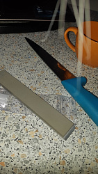 Такая зернистость оптимально подходит для финишной полировки – получения зеркальной поверхности режущей кромки. Работать можно как сухим бруском, так и смоченным водой или слабым мыльным раствором. Применять масло при заточке мы не рекомендуем.