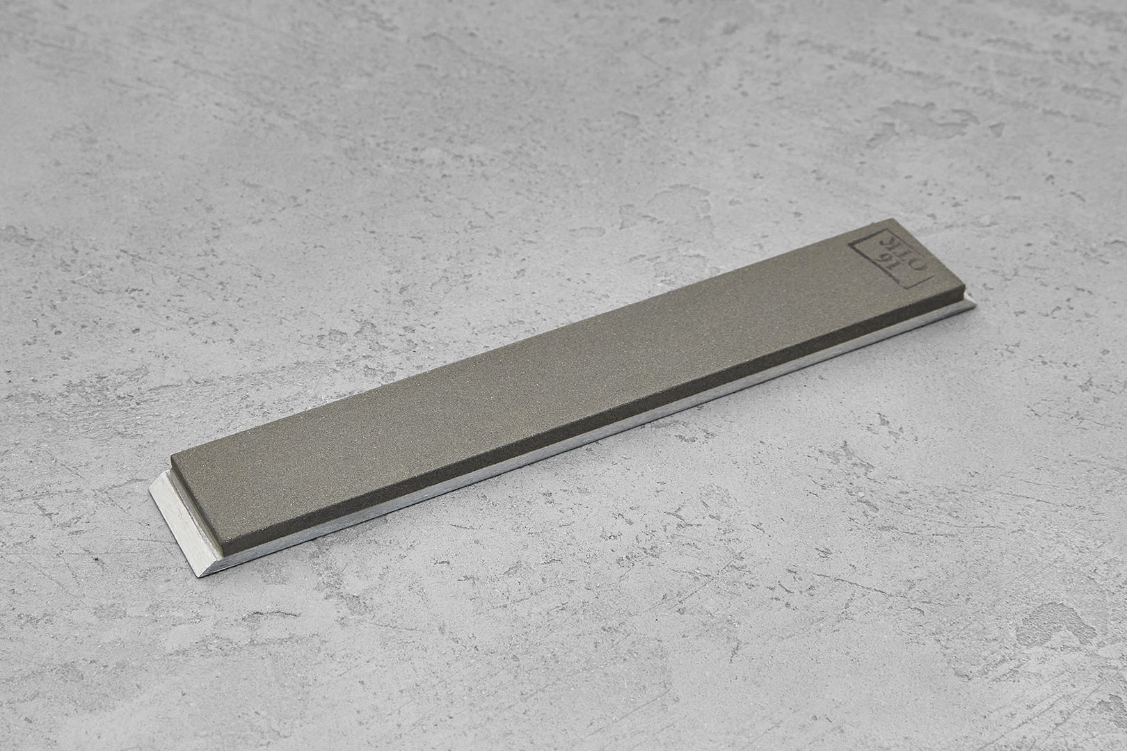 Такая зернистость оптимально подходит для ремонтных работ, работ по восстановлению или изменению геометрии режущей кромки. Работать можно как сухим бруском, так и смоченным водой или слабым мыльным раствором. Применять масло при заточке мы не рекомендуем.