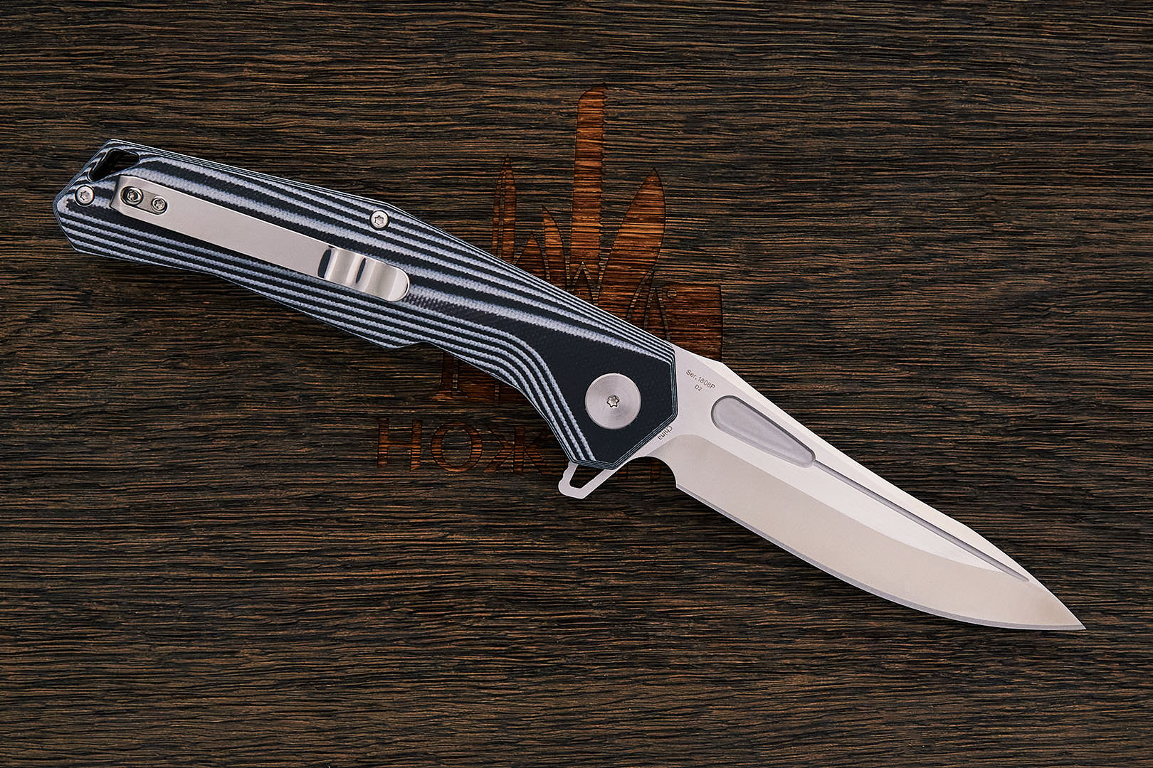 D2 – высоколегированная инструментальная недорогая сталь. Очень широко используется для изготовления ножей по всему миру. Сочетает в себе высокую прочность, упругость, износостойкость. Обладает агрессивным резом, требует ухода ввиду невысокой коррозионной стойкости…