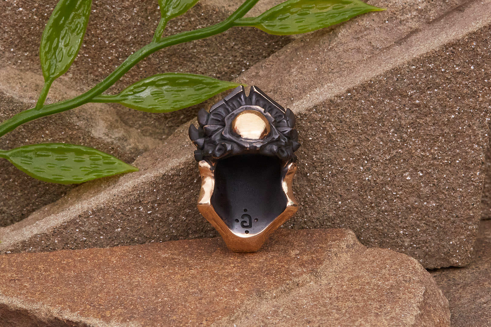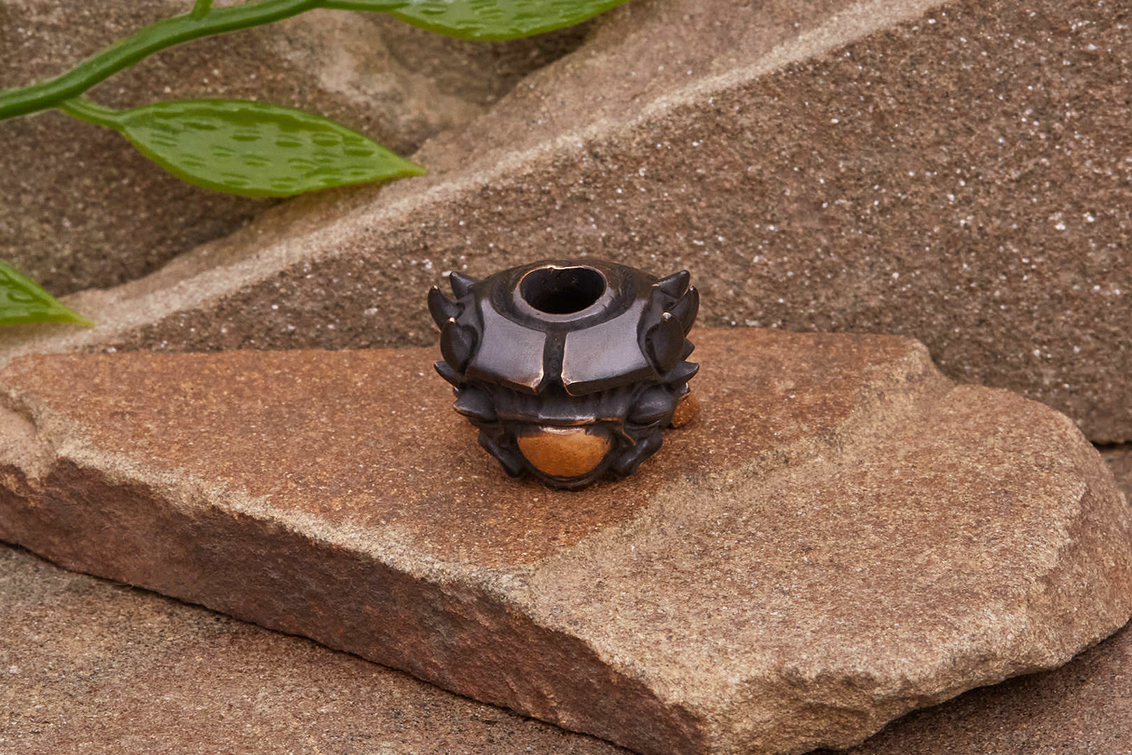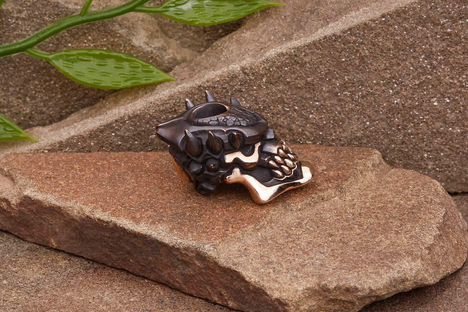Авторская бусина "Хищник" с высокой детализацией от мастерской братьев Пешковых изготовлена из бронзы с коричневой патиной. Имеет следующие параметры: вес 13,8-14,2г, высота 14,0мм, ширина 16,0мм, диаметр отверстия 5,4мм.