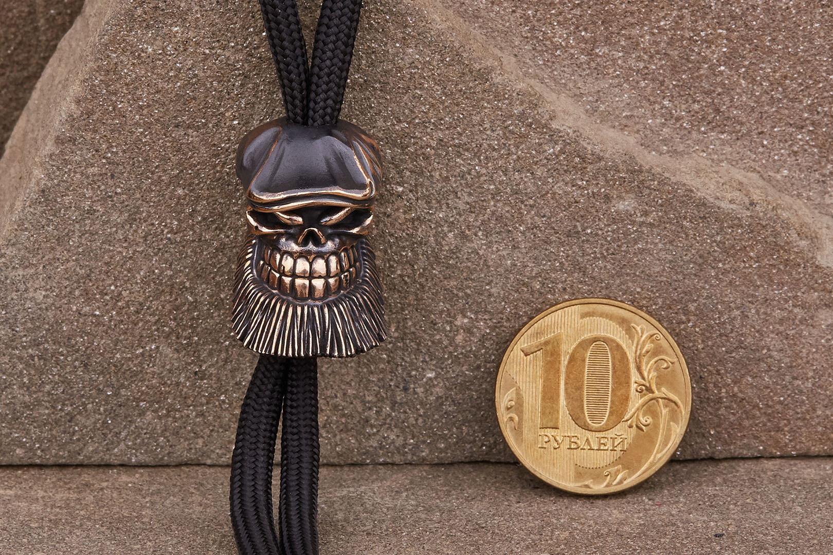 Авторская бусина "Борода" с высокой детализацией от мастерской братьев Пешковых изготовлена из бронзы с коричневой патиной. Имеет следующие параметры: вес 14,6-15,4г, высота 26,4мм, ширина 16,3мм, диаметр отверстия 5,2мм.