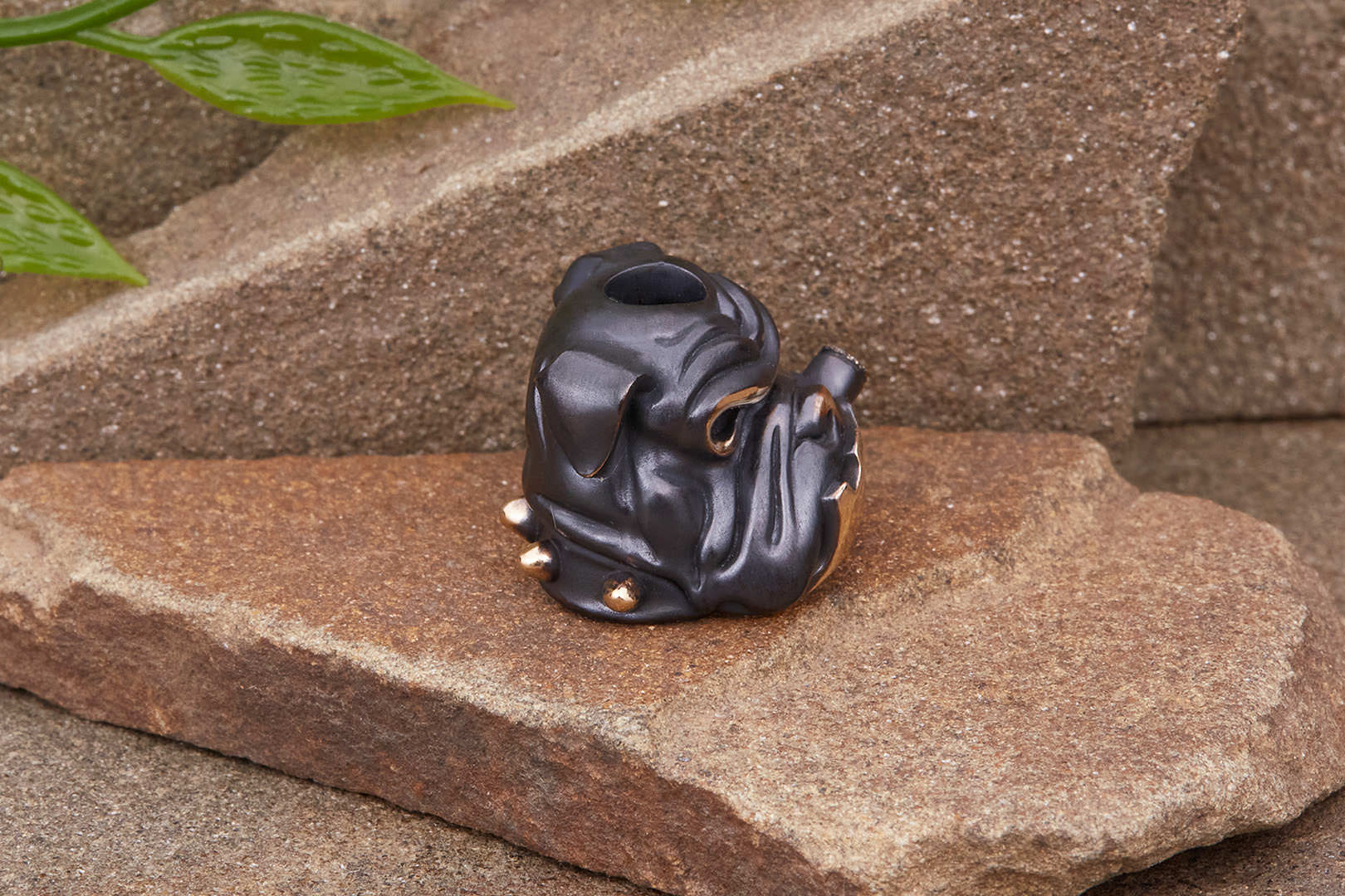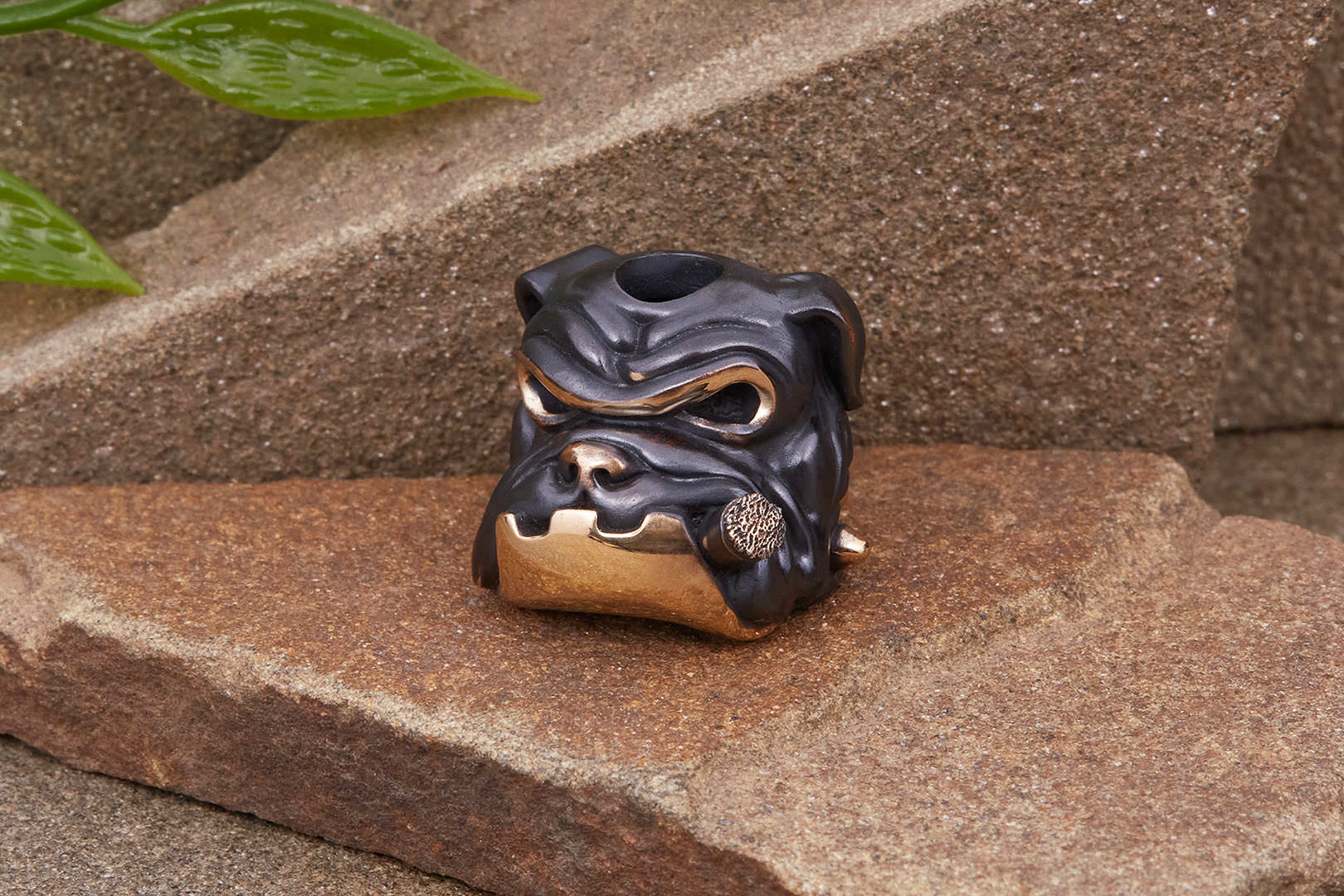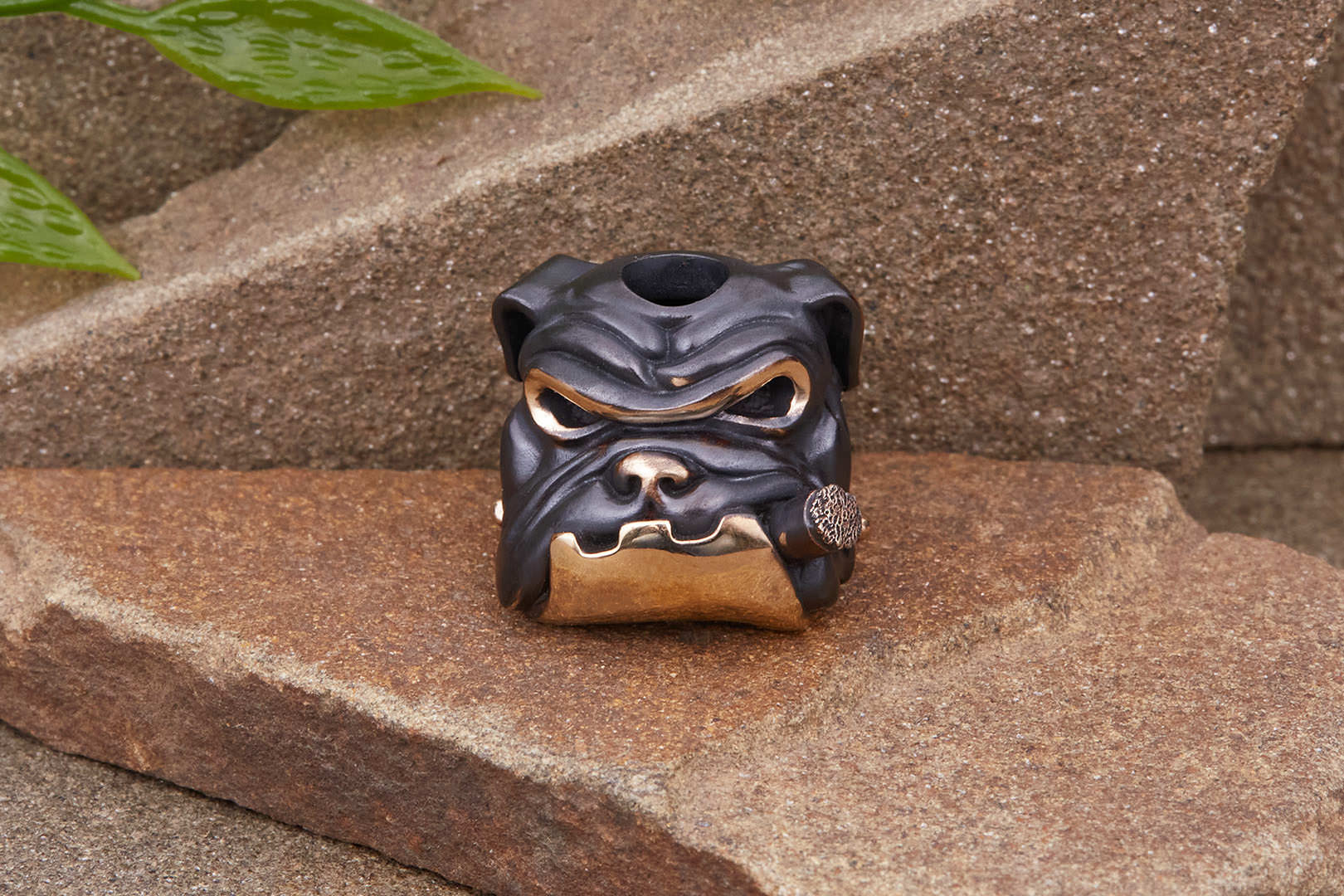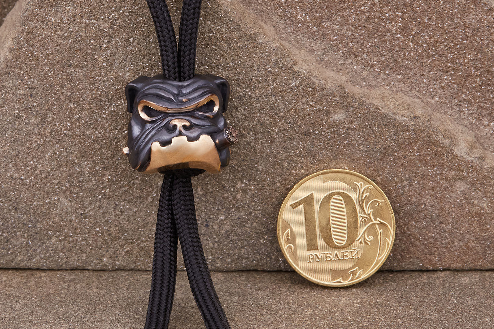 Авторская бусина "Бульдог" с высокой детализацией от мастерской братьев Пешковых изготовлена из бронзы с тёмно-коричневой патиной. Имеет следующие параметры: вес 17,6-18,4г, высота 16,2мм, ширина 18,2мм, диаметр отверстия 5,2мм.