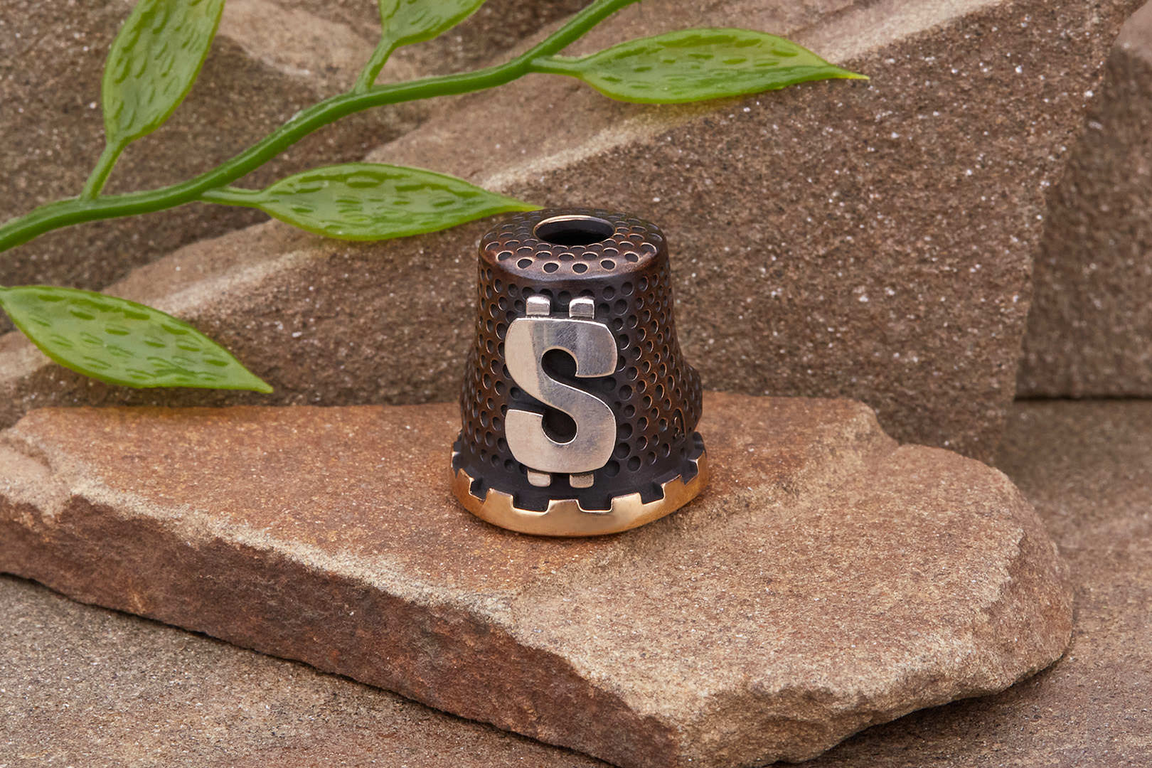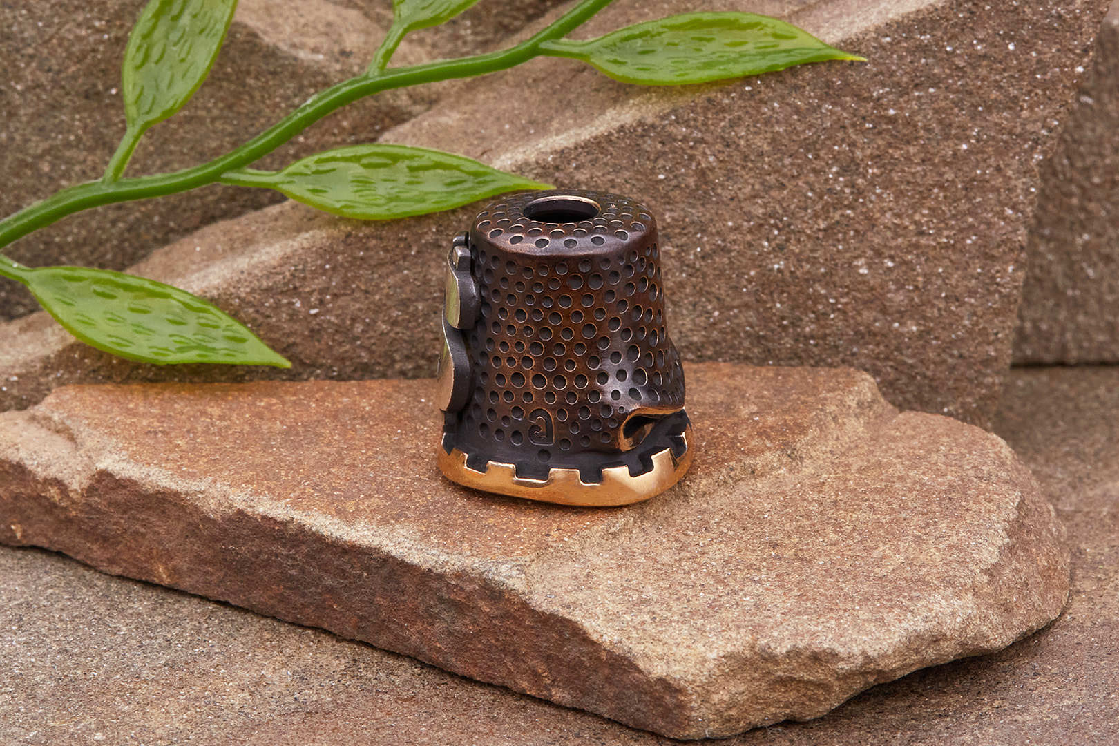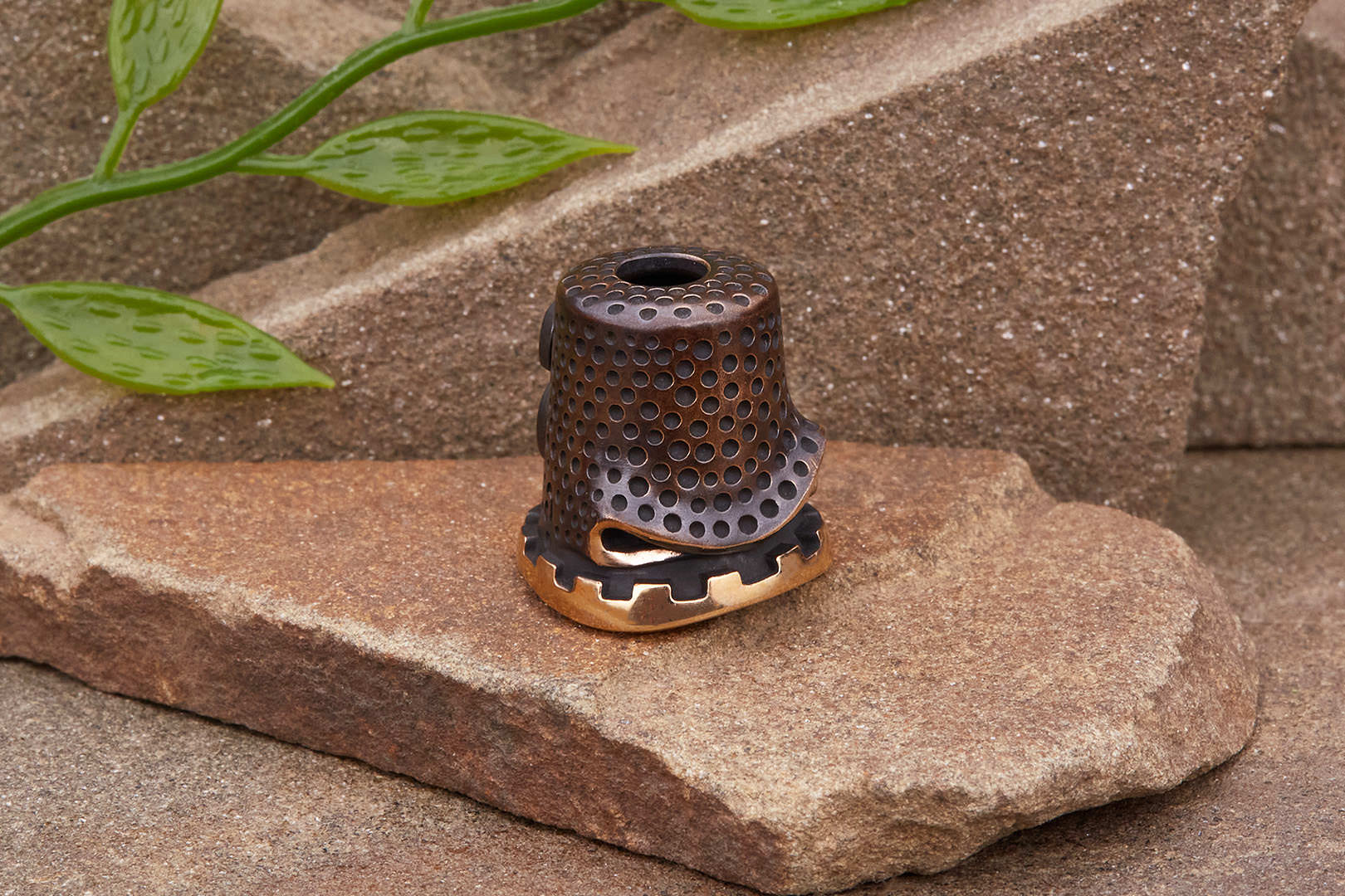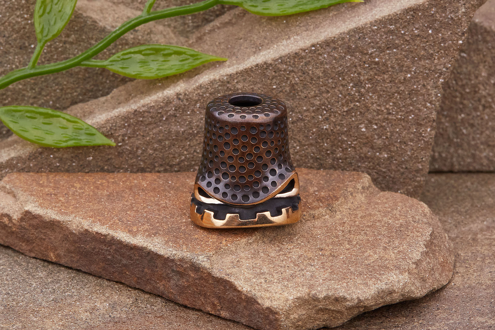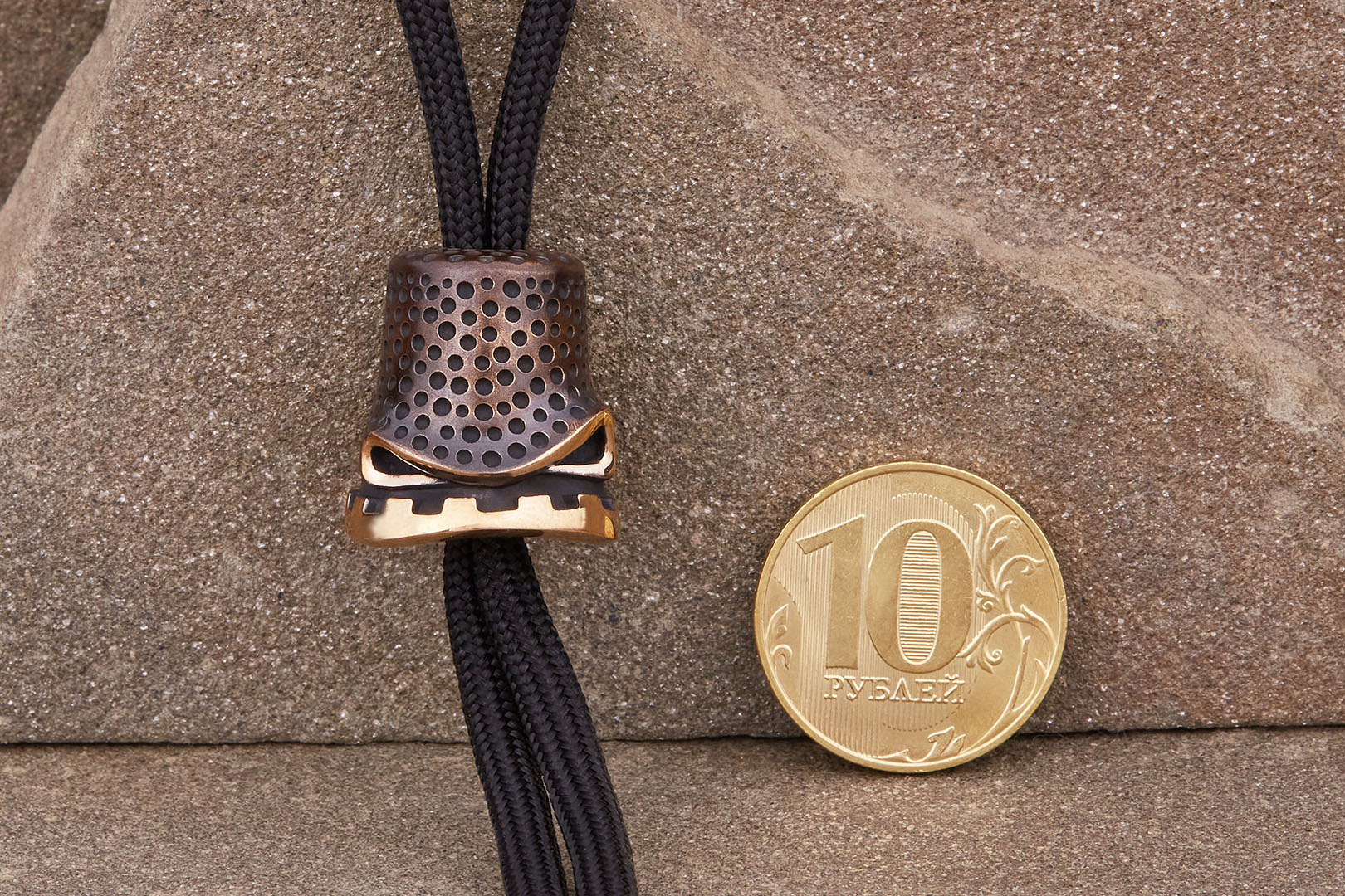 Авторская бусина "Напёрсток" с высокой детализацией от мастерской братьев Пешковых изготовлена из бронзы с коричневой патиной. Имеет следующие параметры: вес 13,6-14,4г, высота 20,2мм, ширина 18,8мм, диаметр отверстия 5,4мм.