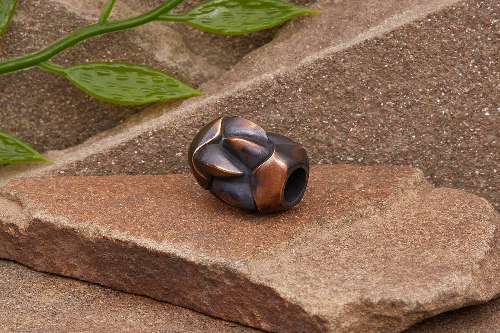 Авторская бусина "Зуб орка" с высокой детализацией от мастерской братьев Пешковых изготовлена из бронзы с коричневой патиной. Имеет следующие параметры: вес 9,8-10,2г, высота 17,5мм, ширина 12,5мм, диаметр отверстия 5,2мм.