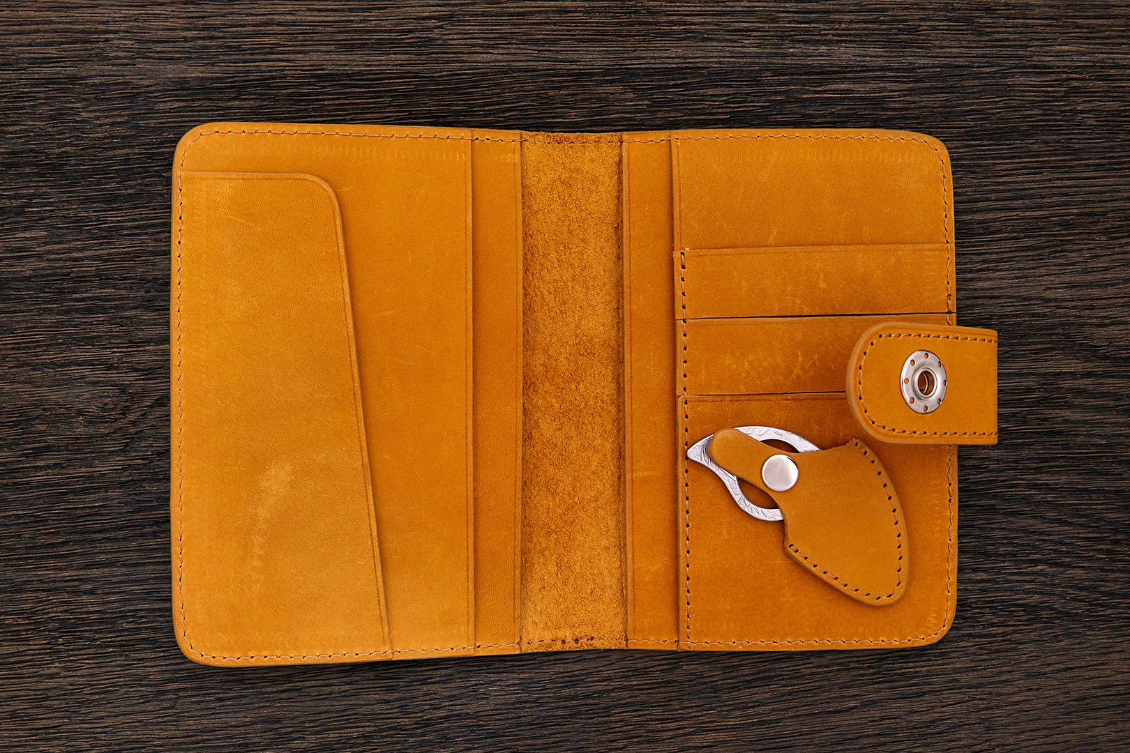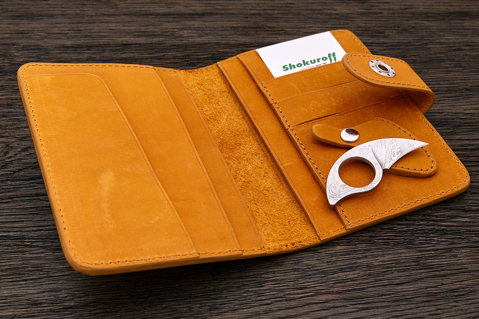 Обложка для паспорта и автодокументов с ножом рыжая | Арт ShD1bg
