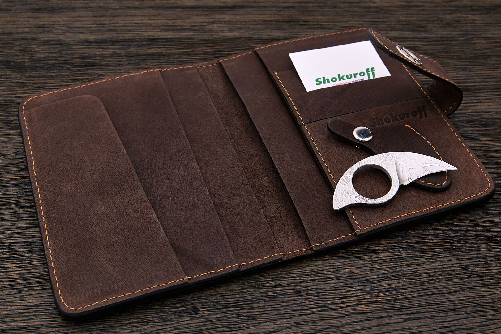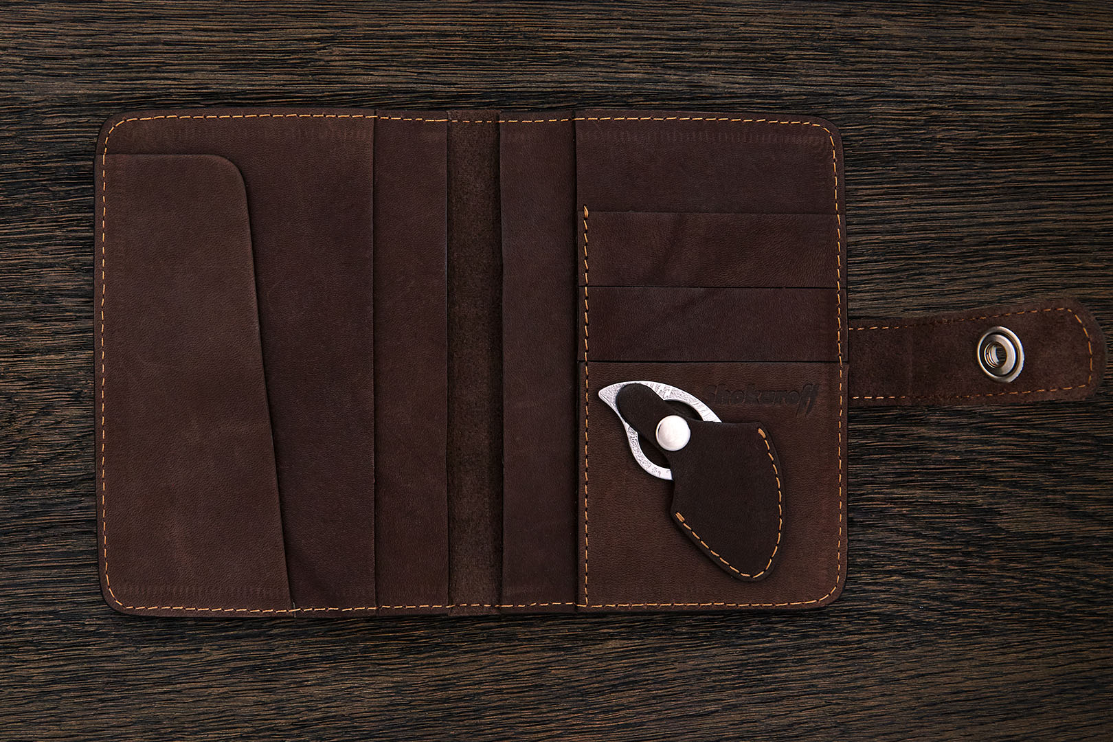 Обложка для паспорта и автодокументов с ножом коричневая | Арт ShD1br