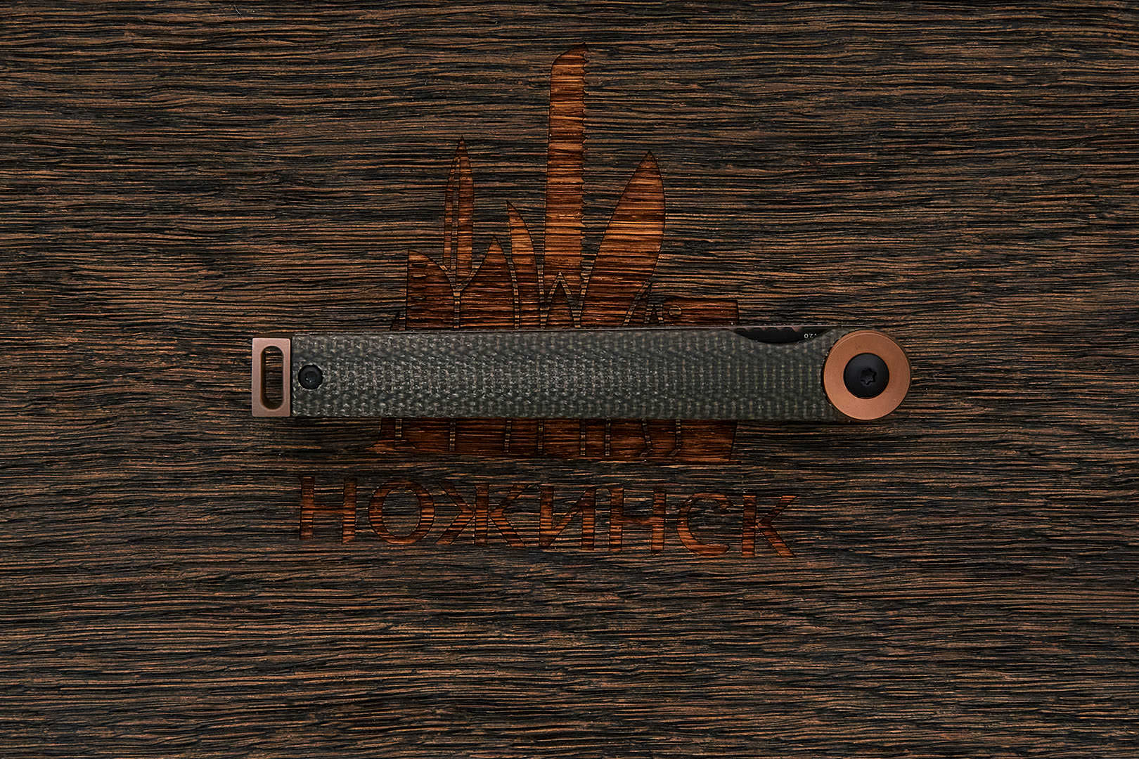 Микарта – очень прочный конструкционный материал, представляющий собой слоистый пластик на основе ткани и фенолформальдегидных или эпоксидных смол. Слои ткани пропитываются и склеиваются под высоким давлением и температурой. Благодаря совокупности потребительских свойств micarta (текстолит) прекрасно подходит для изготовления рукоятей ножей. Прочная, не впитывает ни воду, ни запахи, тактильная и высоко декоративная за счет разнообразия текстур и цветов. По теплопроводности микарта близка к натуральному дереву, что позволяет достаточно комфортно использовать ножи на сильном морозе.