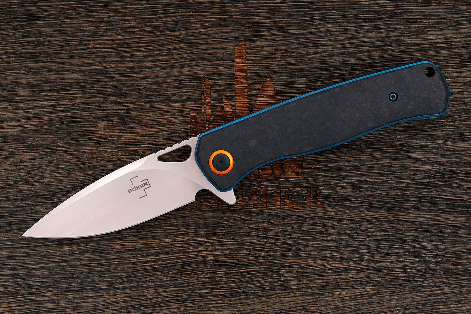 Карбон от англ. carbon — «углерод». Стоит в одном ряду с такими композитными материалами, как текстолит (micarta) и стеклотекстолит (G-10). При изготовлении карбона в качестве основы используют ткани из углеродного волокна различного плетения, в качестве связующего вещества, как правило — эпоксидные смолы. Достичь хорошего результата при производстве позволяет технология вакуумной инфузии. Плотность 1,40-1,60 г/см3.