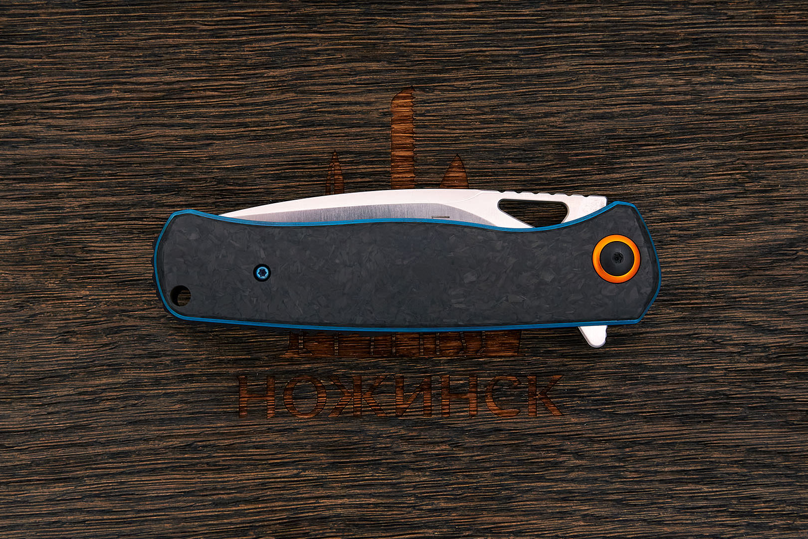 На сегодняшний день карбон один из лучших материалов для изготовления рукоятей ножей. Строгий по фактуре, нейтральный по цвету от светло-серого до почти черного, он практически не скользит в руке. Чрезвычайно прочный, абсолютно не впитывает ни воду, ни запахи, отлично переносит перепады влажности и температуры. Пожалуй, единственный его недостаток — сложная технология производства и, как следствие, высокая цена.