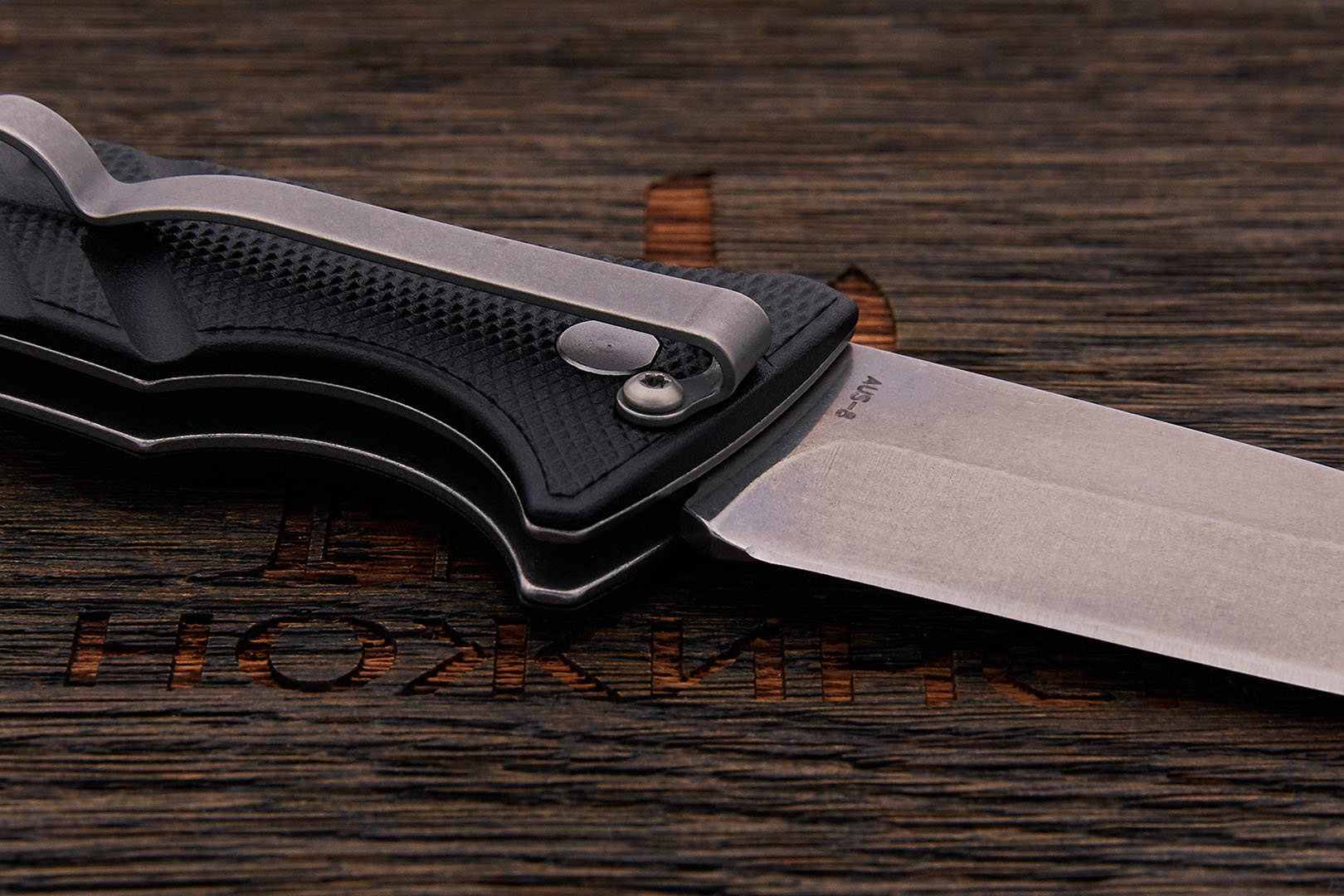 AUS-8 – среднеуглеродистая высоколегированная нержавеющая сталь. Разработана и производиться японской металлургической компанией Aichi Steel Works. При таком содержании углерода и хрома в структуре стали появляются эвтектические карбиды, однако их количество еще невелико. Благодаря этому, на высоком уровне остаются механические свойства, сталь легко шлифуется и полируется. Сталь очень стабильна, предсказуема и недорога. Однако благодаря своей структуре, при хорошей термообработке AUS-8 отличается высокой агрессивностью реза по мягким материалам. Оптимальная твердость 57-59 HRC.