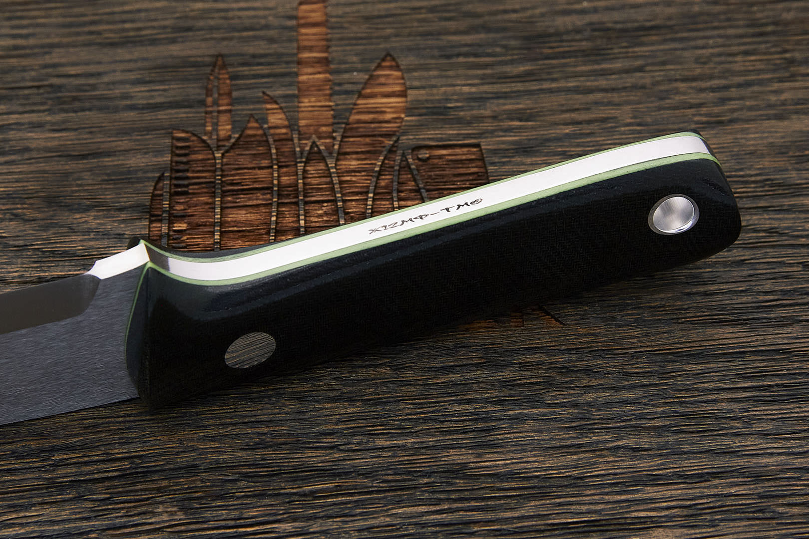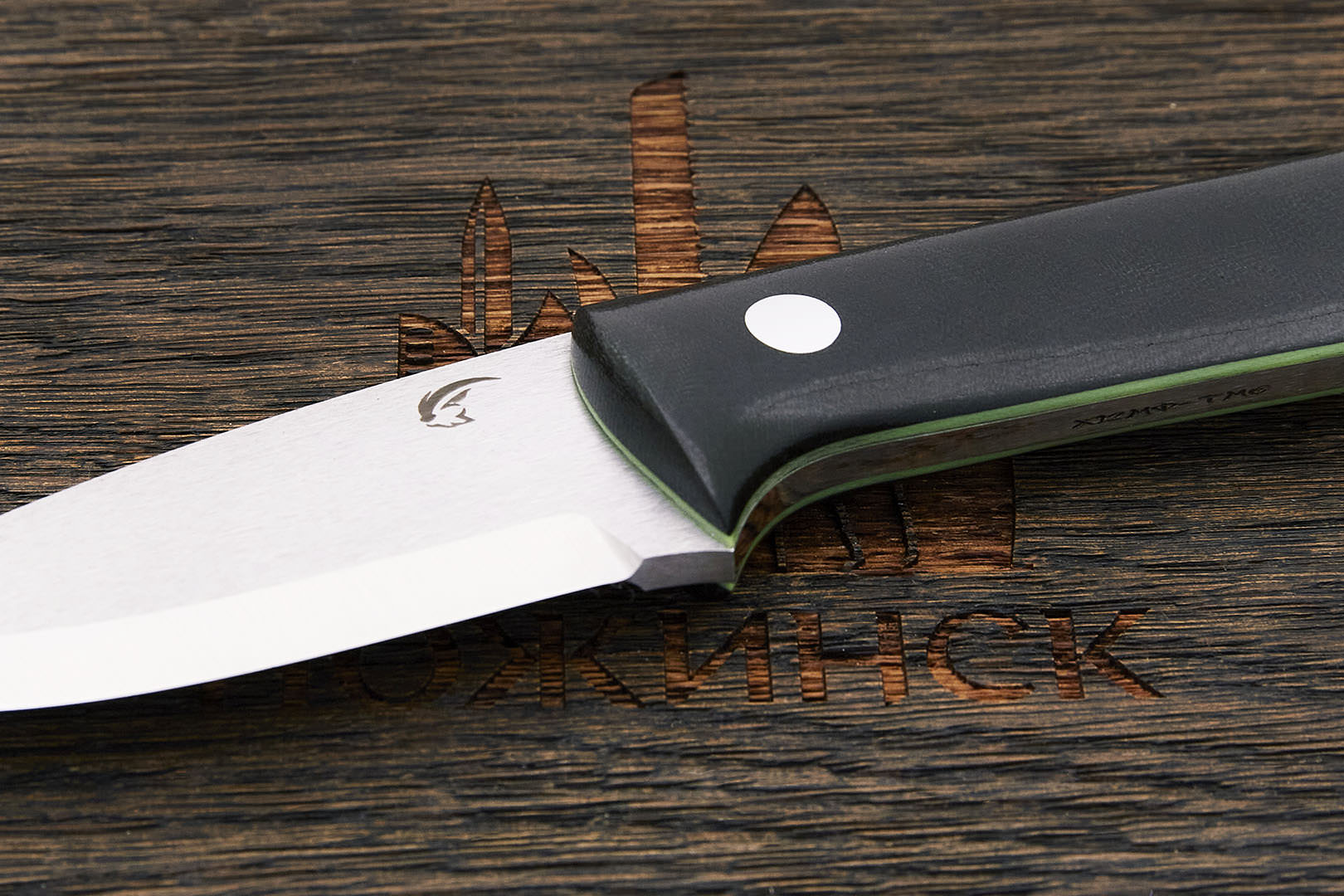 Х12МФ – высоколегированная условно-коррозионная российская сталь. Аналог американской D2. Отлично зарекомендовала себя и широко применяется для изготовления ножей. Сочетает в себе высокую прочность, упругость, износостойкость. Обладает агрессивным резом, требует ухода ввиду невысокой коррозионной стойкости…