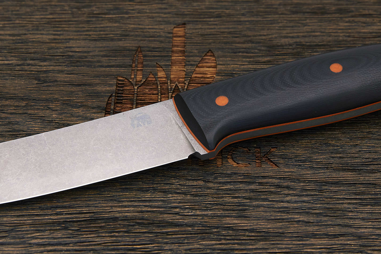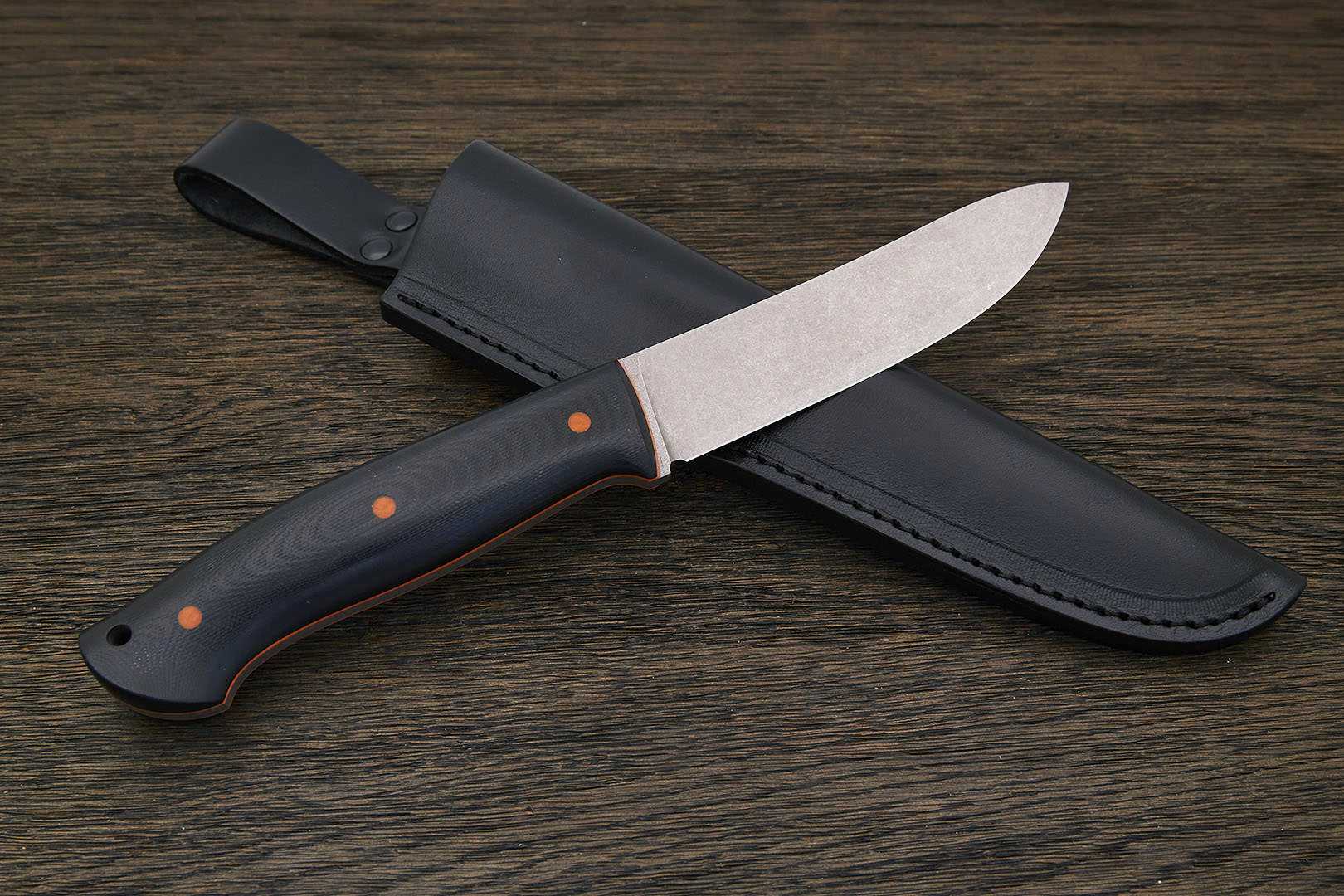 Универсальный крепкий нож средней длины, предназначенный для комфортного отдыха в дикой природе. Обух имеет горбинку ближе к кончику для вспарывания шкур и различных материалов. Прямой клинок с в меру агрессивным острием хорошо подходит для разделки мяса и рыбы, обустройства походного лагеря, различных тяжелых работ. Цельнометаллическая конструкция в совокупности с толщиной обеспечивает достаточную прочность и устойчивость к боковым и ударным нагрузкам. Рукоять имеет анатомический контур и плотно заполняет ладонь, предотвращая соскальзывание на режущую кромку. На конце выполнено отверстие для темлячного шнурка.