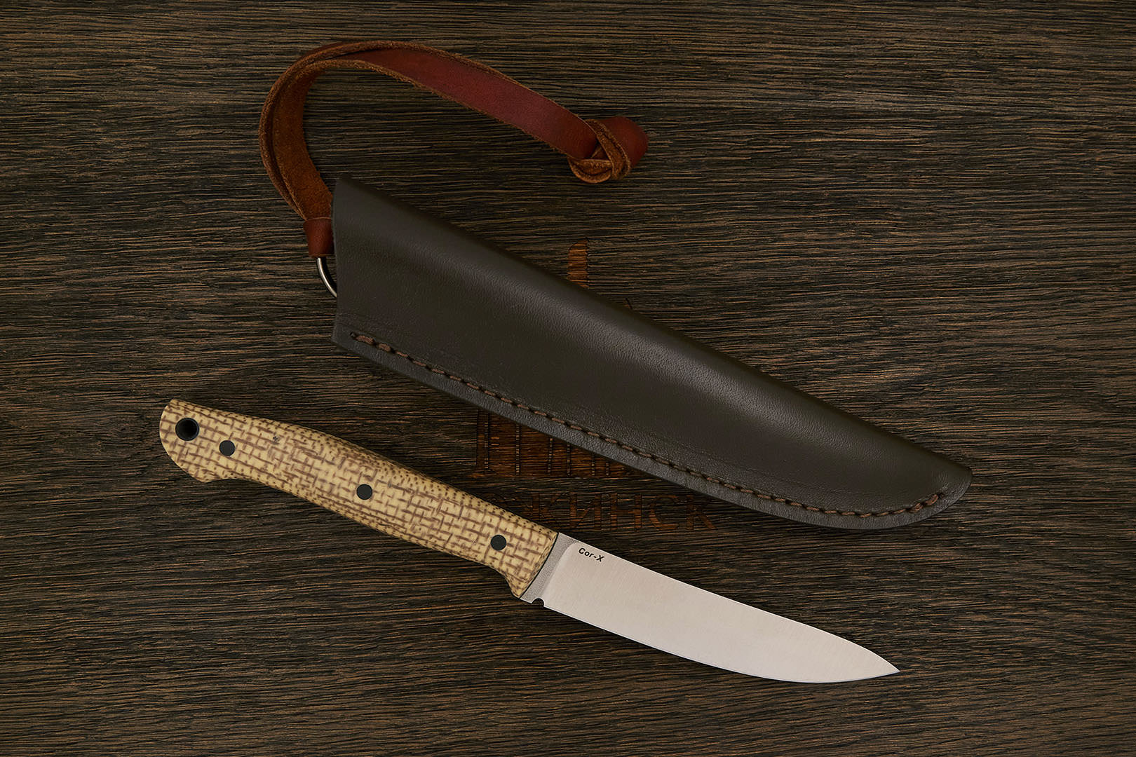 Микарта – очень прочный конструкционный материал, представляющий собой слоистый пластик на основе ткани и фенолформальдегидных или эпоксидных смол. Слои ткани пропитываются и склеиваются под высоким давлением и температурой. Благодаря совокупности потребительских свойств micarta (текстолит) прекрасно подходит для изготовления рукоятей ножей. Прочная, не впитывает ни воду, ни запахи, тактильная и высоко декоративная за счет разнообразия текстур и цветов. По теплопроводности микарта близка к натуральному дереву, что позволяет достаточно комфортно использовать ножи на сильном морозе.