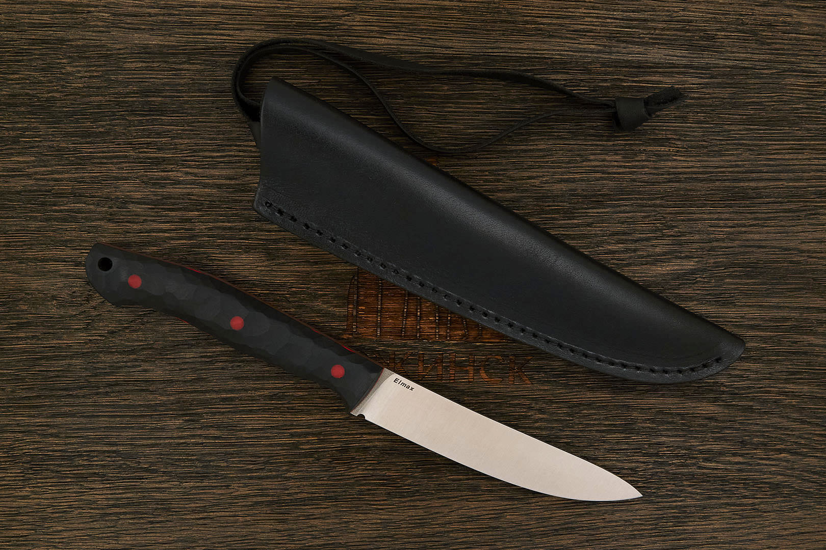 Elmax – одна из лучших инструментальных коррозионностойких порошковых сталей. Выпускается австрийско-шведской компанией Böhler-Uddeholm по технологии третьего поколения (superclean), что означает повышенную чистоту и вязкость. В составе карбиды небольшого размера, которые способствуют агрессивному резу. Сталь не капризна в заточке, долго удерживает остроту режущей кромки. При качественной термообработке Elmax всегда превосходит аналоги по вязкости, устойчива к воздействию внешней среды. Такой комплекс свойств обеспечивает изготовленным из нее ножам отличные потребительские качества.