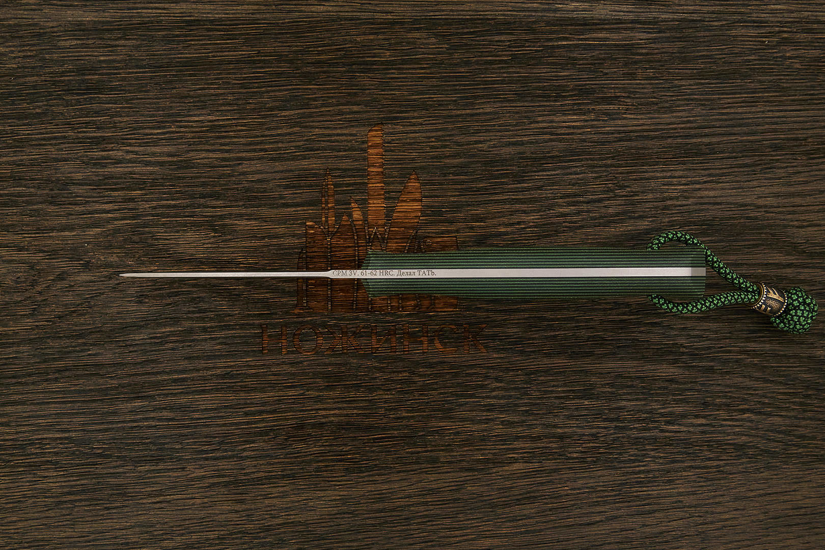 CPM 3V – Инструментальная корродирующая порошковая сталь от американской компании Crucible Industries. Для этой стали характерен агрессивный рез – следствие технологии порошкового передела, длительное удержание режущей кромки и отличная ударная вязкость. Благодаря высоким параметрам ударной вязкости режущая кромка сохраняется длительное время, даже при закалке до 63 HRC. Не будучи нержавеющей, CPM 3V все же обладает достаточно высокой коррозионной стойкостью, поэтому ножи из нее хоть и требуют ухода, но не боятся применения в коррозионно-активных средах. Сталь нашла своё применение в ножах для бушкрафта у многих зарубежных и отечественных производителей, некоторые эксперты по выживанию считают её лучшей для своего походного ножа.