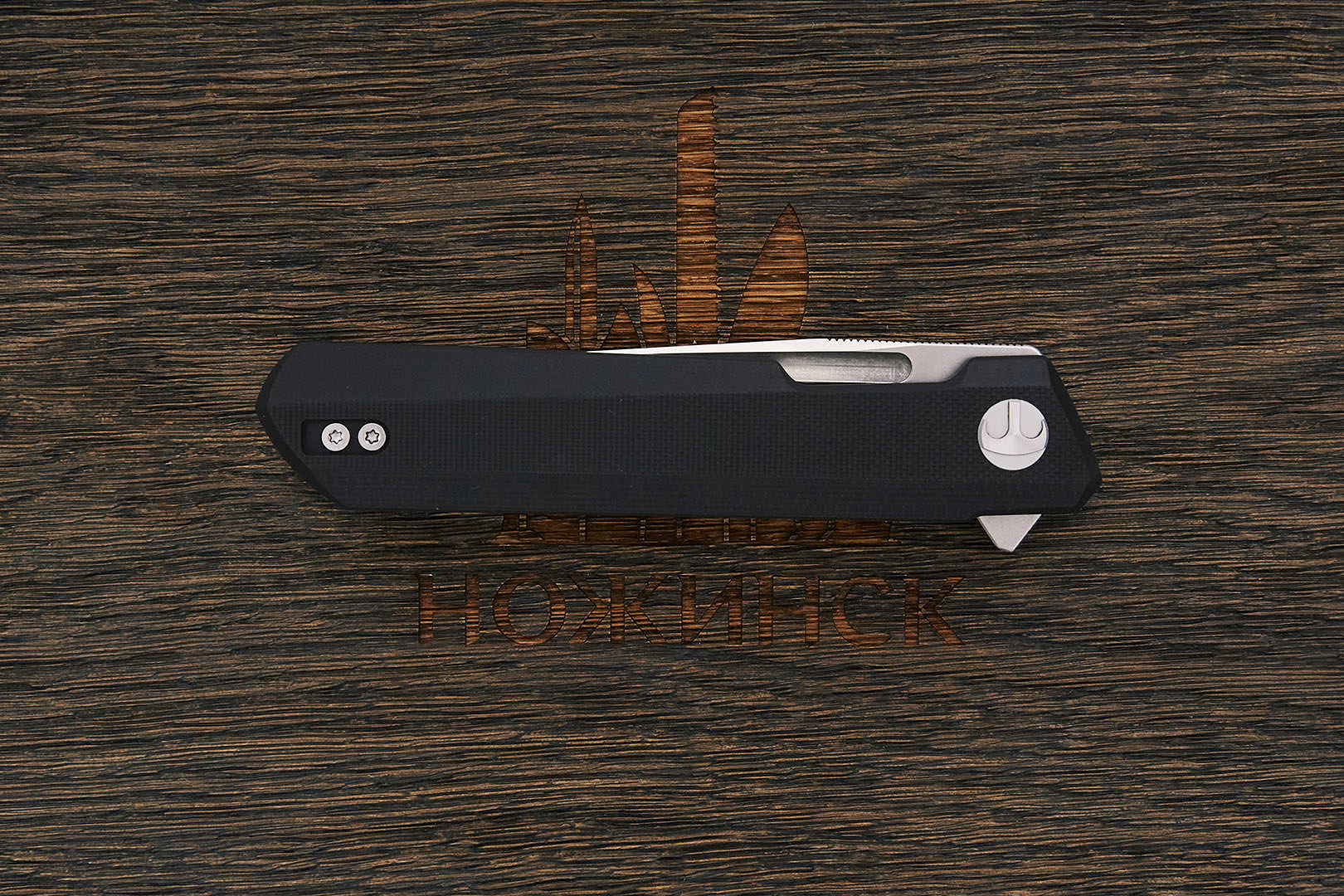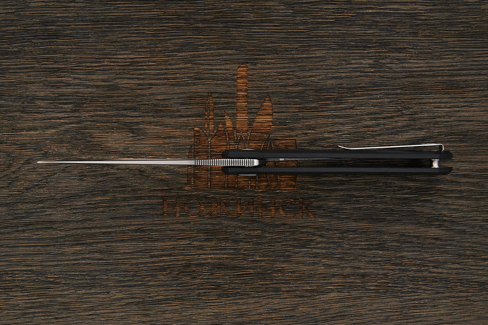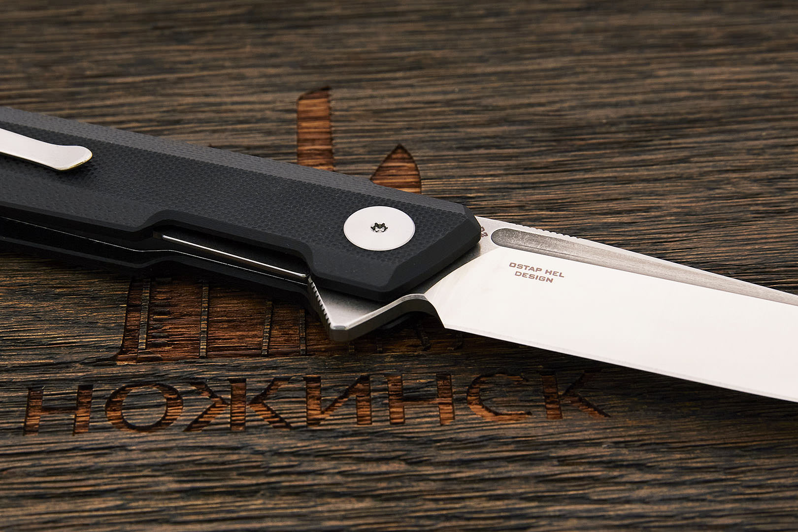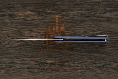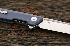 Компактный и легкий универсальный складной нож по дизайну Остапа Хела. Клинок имеет агрессивную форму clip point с острым кончиком для деликатных задач, требующих хорошую проникающую способность и контроль. На обухе выполнена насечка, обеспечивающая надежный хват при работе. В ноже реализована возможность однорукого открывания при помощи плавника (flipper), в закрытом состоянии выступающим над спинкой рукоятки, а в открытом – представляющим упор для безопасного удержания. Осевой узел оборудован керамическими подшипниками, обеспечивающими плавный и легкий ход. За фиксацию клинка отвечает механизм liner lock с установленным шариком детента, препятствующим случайному выбрасыванию при ношении. Рукоятка в виде накладок из композита имеет прямую и плоскую форму, подходящую для комфортного ношения в кармане. Нож оборудован реверсивной клипсой глубокой посадки.
