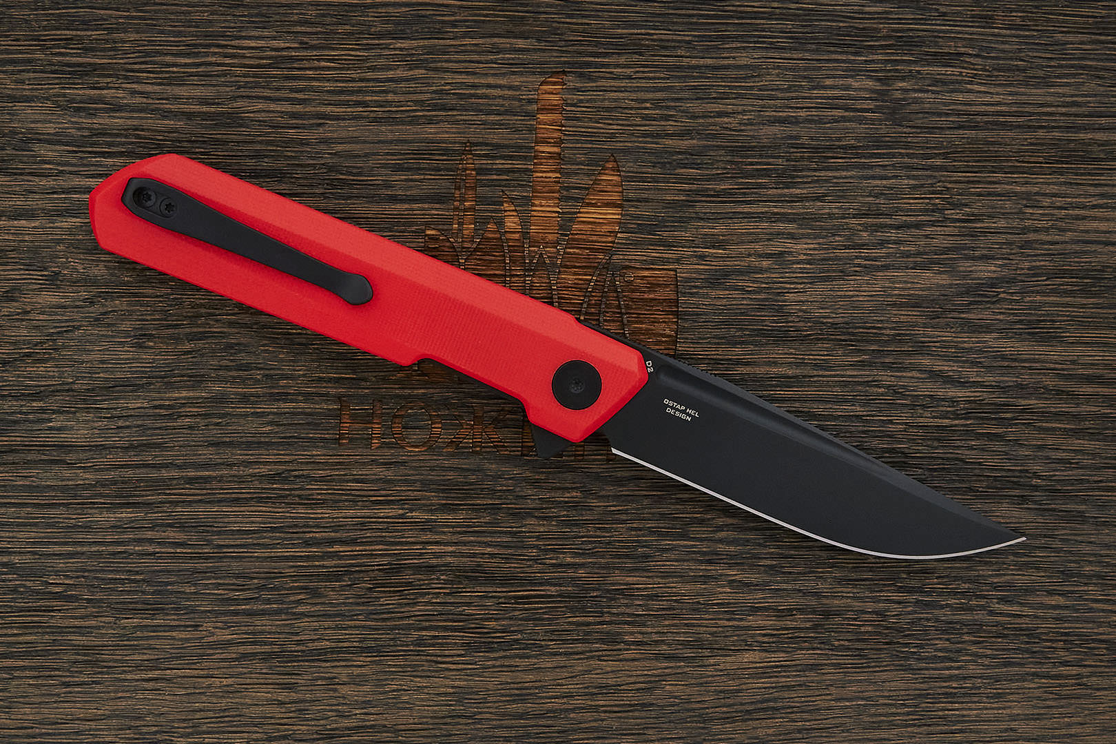 Компактный и легкий универсальный складной нож по дизайну Остапа Хела. Клинок имеет агрессивную форму clip point с острым кончиком для деликатных задач, требующих хорошую проникающую способность и контроль. На обухе выполнена насечка, обеспечивающая надежный хват при работе. В ноже реализована возможность однорукого открывания при помощи плавника (flipper), в закрытом состоянии выступающим над спинкой рукоятки, а в открытом – представляющим упор для безопасного удержания. Осевой узел оборудован керамическими подшипниками, обеспечивающими плавный и легкий ход. За фиксацию клинка отвечает механизм liner lock с установленным шариком детента, препятствующим случайному выбрасыванию при ношении. Рукоятка в виде накладок из композита имеет прямую и плоскую форму, подходящую для комфортного ношения в кармане. Нож оборудован реверсивной клипсой глубокой посадки.