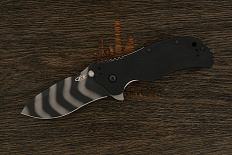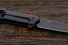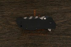 Оригинальный складной нож в биомеханическом стиле по дизайну Гжегоша “Kombou” Грабарски. Клинок имеет прямой строй с агрессивной формой острия для хороших проникающих свойств и деликатного контролируемого реза. На голомени выполнен длинный узкий дол с перфорацией, добавляющий авторской эстетики. В ноже реализована возможность однорукого открывания при помощи плавника (flipper), в закрытом состоянии выступающим над спинкой рукоятки, а в открытом – представляющим упор для безопасного удержания. Осевой узел оборудован керамическими подшипниками, обеспечивающими плавный и легкий ход. За фиксацию клинка отвечает механизм liner lock с установленным шариком детента, препятствующим случайному выбрасыванию при ношении. Рукоятка имеет фигурную форму, образованную текстурированными накладками, и оборудована односторонней клипсой для переноски в кармане. В бэкспейсере выполнено отверстие под темляк.