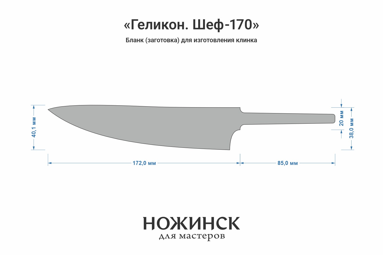 Размеры бланка: длина клинковой части 172мм (1-2 мм предусмотрены для посадки больстера), ширина 38мм, длина хвостовика 85мм.