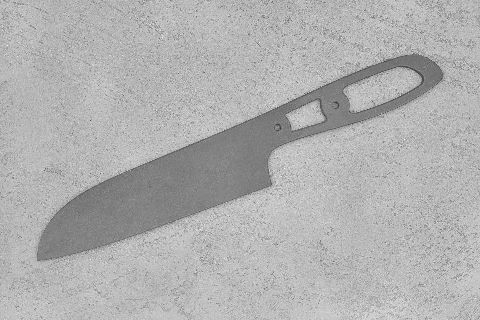Бланк-заготовка для кухонного ножа «Премьер С150» из листового проката стали AR-RPM9, изготовлен методом гидроабразивной резки.