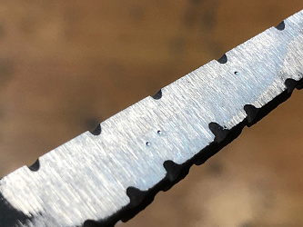 Бланки могут иметь незначительные поводки, устраняемые шлифованием. Заготовки клинков, предназначенные для сквозного монтажа, требуют высокого отпуска окончания хвостовика (от трех до пяти нагревов горелкой до 750-800°С) для нарезания резьбы или расклепывания.