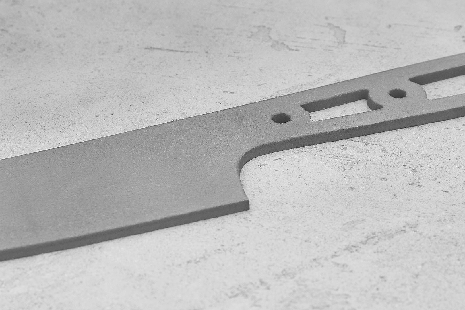 Бланк-заготовка для кухонного ножа «"Геликон П155» из листового проката стали AUS10Co производства Ahonest Changjiang, вырезан методом гидроабразивной резки.
