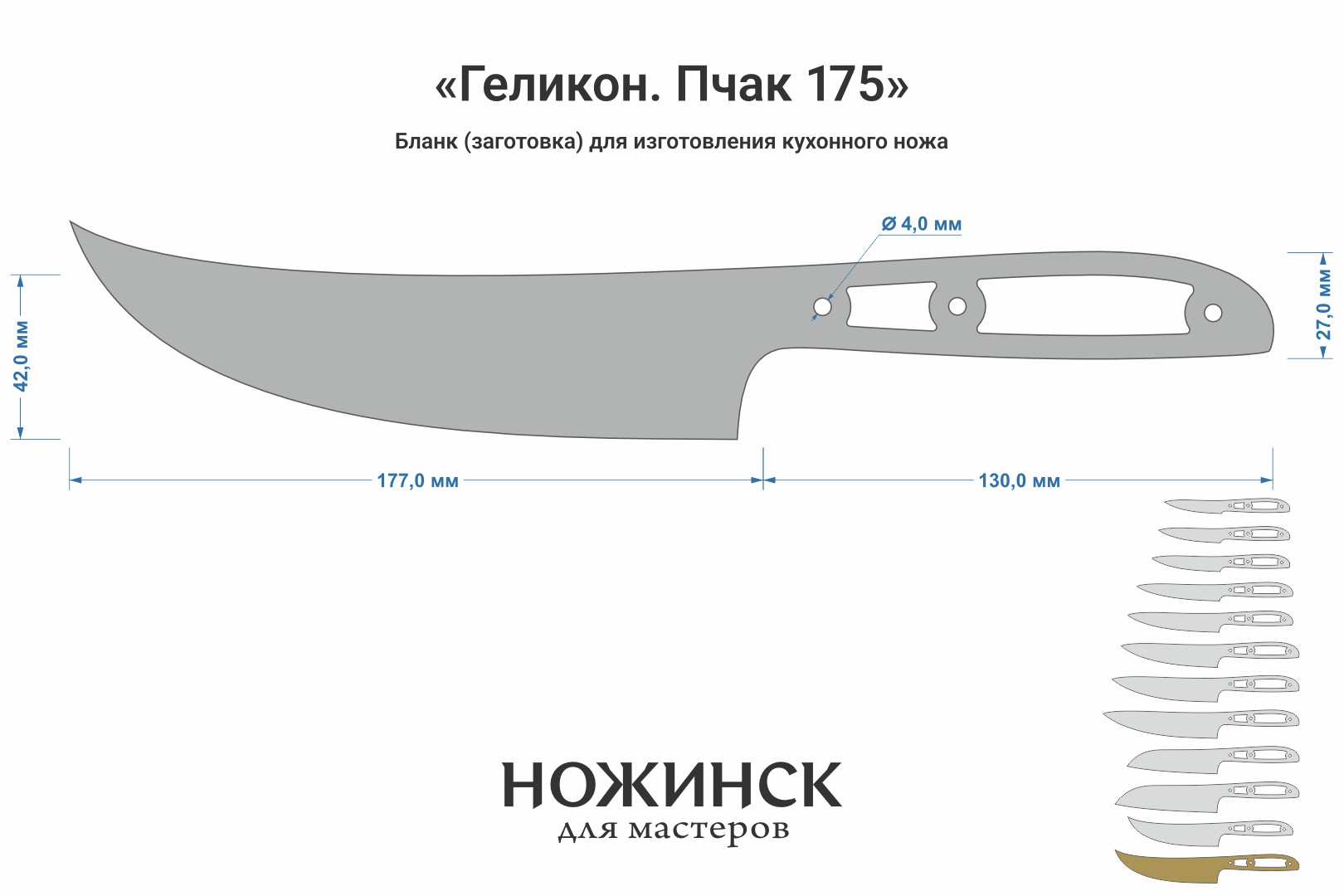 Размеры бланка: длина клинковой части 177мм, ширина 42мм (1мм предусмотрен на контуровку), общая длина заготовки 307мм.