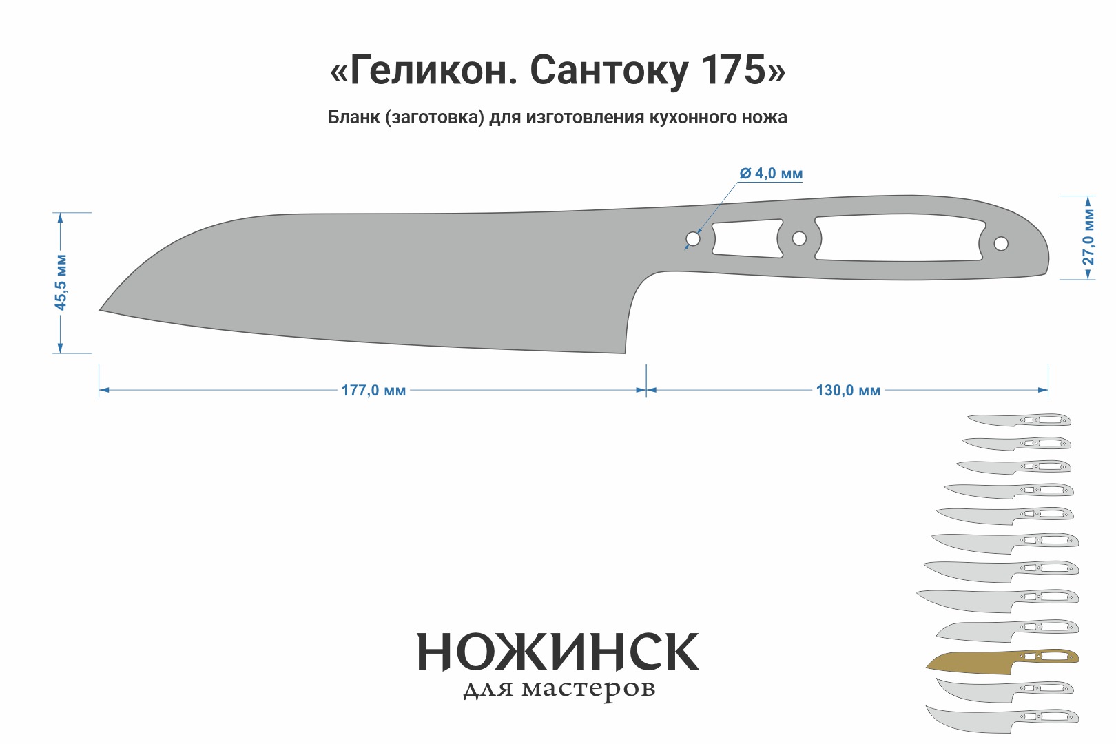 Бланк-заготовка для кухонного ножа «"Геликон С175» из листового проката стали AUS10Co производства Ahonest Changjiang, вырезан методом гидроабразивной резки.