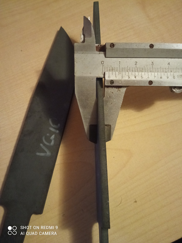 Размеры бланка: длина клинковой части 142мм (1-2 мм предусмотрены для посадки больстера), ширина 29мм, длина хвостовика 85мм, диаметр отверстия 4мм.