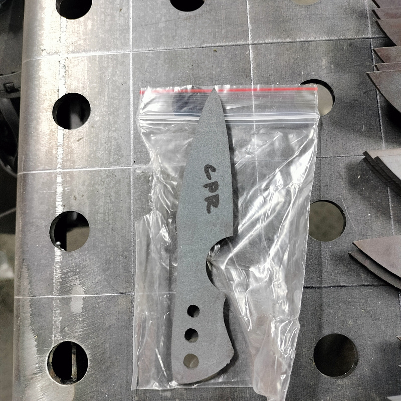 Бланк-заготовка для ножа «Корсар-I» из листового проката стали AUS10Co, изготовлен методом гидроабразивной резки.