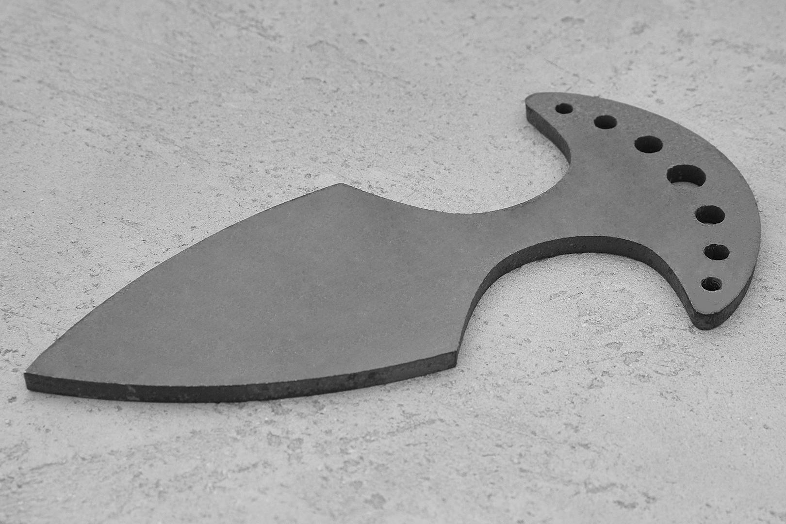 Бланк-заготовка для ножа «Пуш-даггер-I» из листового проката стали AUS10Co, изготовлен методом гидроабразивной резки.