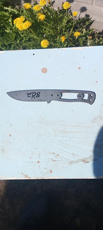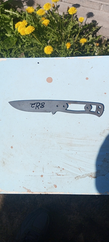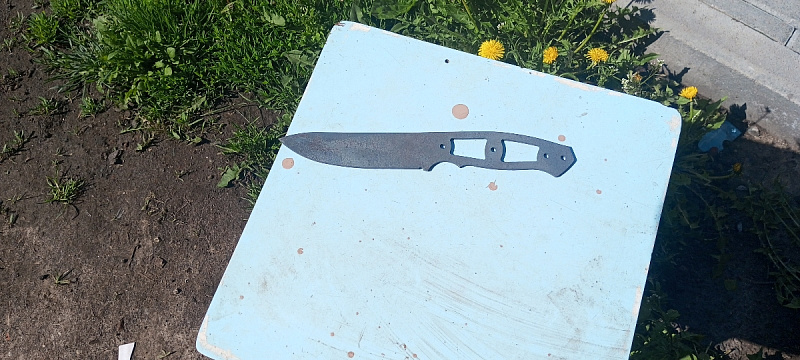 Бланк-заготовка для ножа «F1» из листового проката стали Cr8 производства Ahonest Changjiang, вырезан методом гидроабразивной резки.