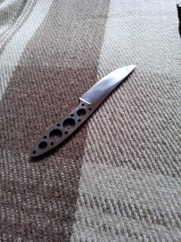 Бланк-заготовка для ножа «Мини-I» из листового проката стали Cr8 производства Ahonest Changjiang, вырезан методом гидроабразивной резки.