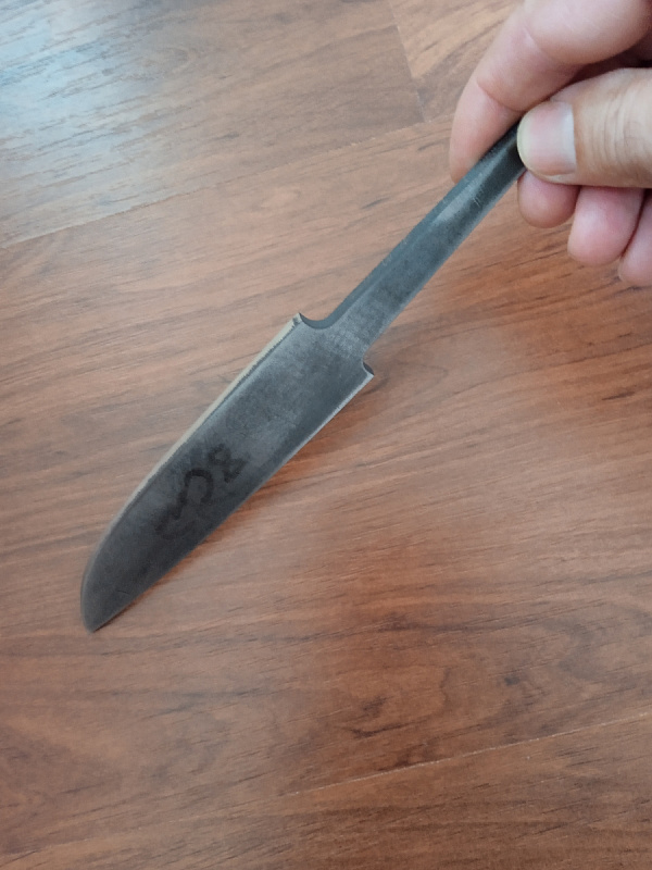 Бланк-заготовка для ножа «Уралец-II» из листового проката стали Cr8 производства Ahonest Changjiang, вырезан методом гидроабразивной резки.