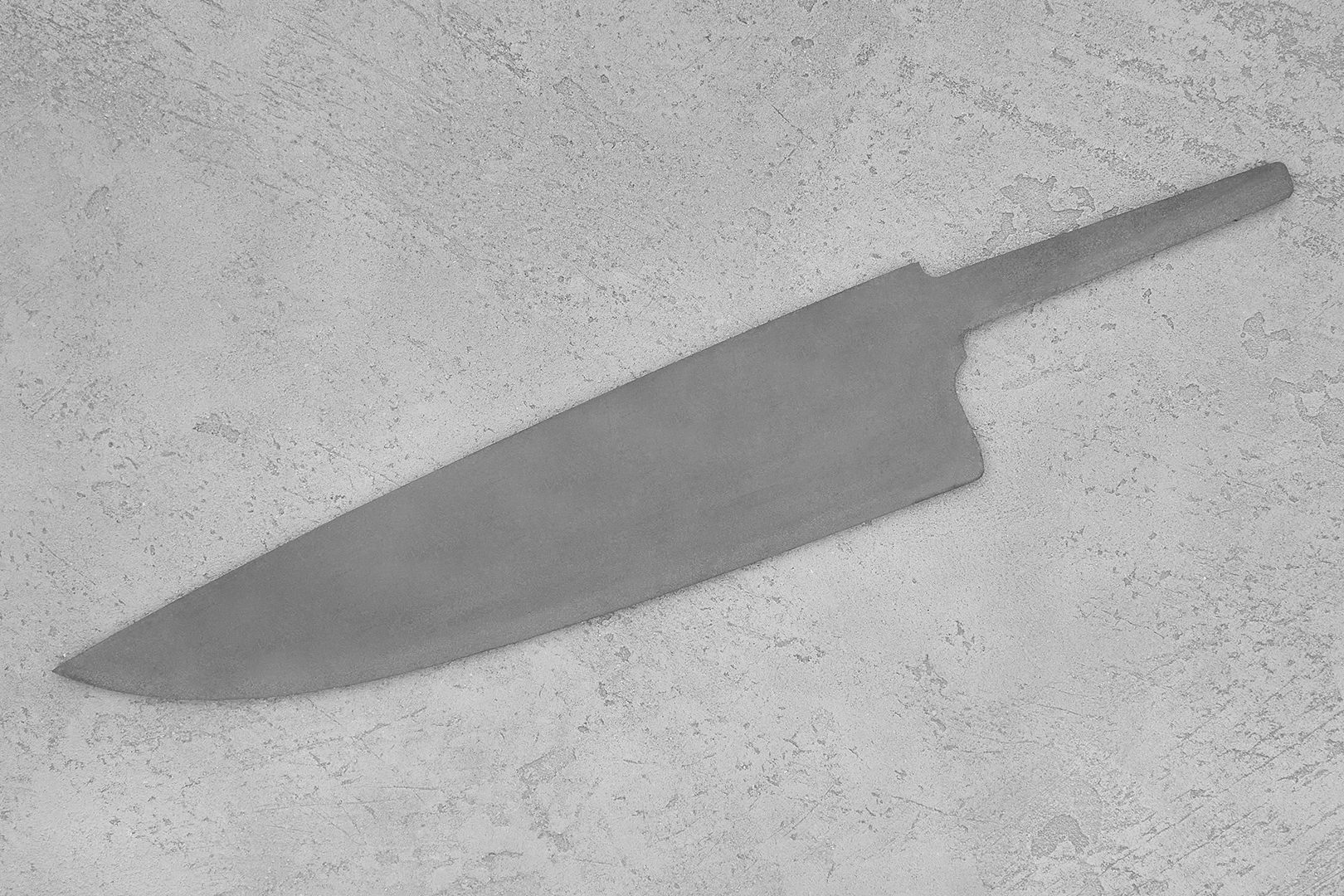 Бланк-заготовка для кухонного ножа «Аппарель Ш215» из листового проката порошковой стали JM390A (идентичной M390), изготовлен методом гидроабразивной резки.