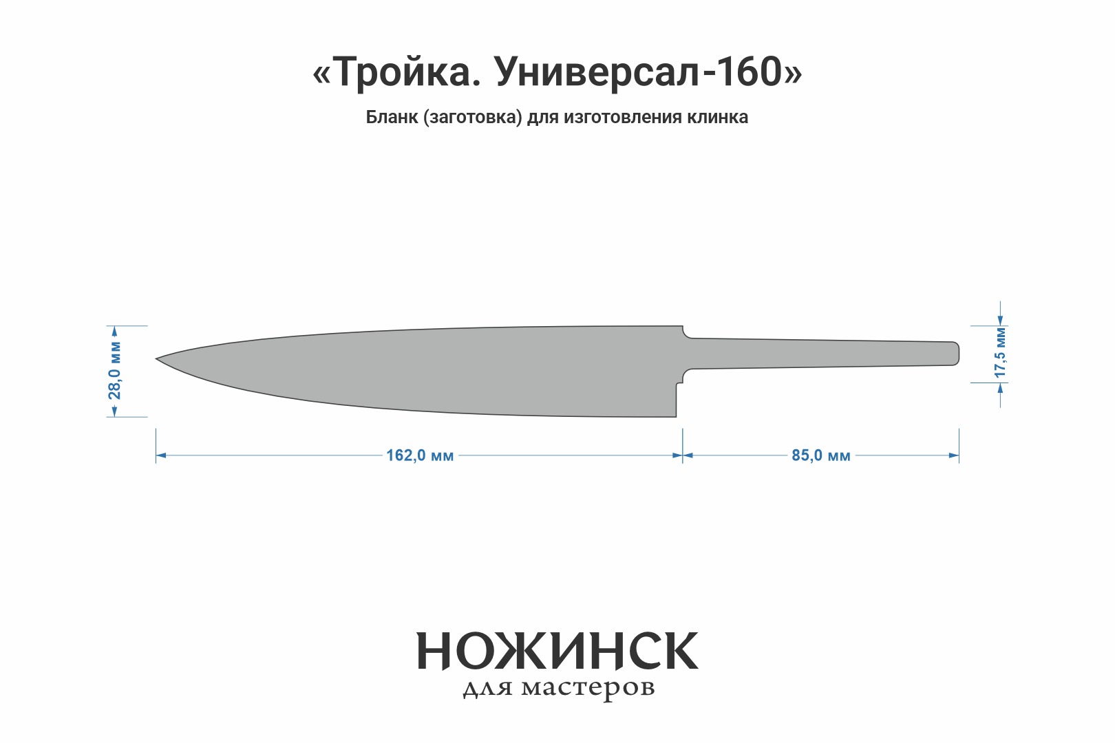 Размеры бланка: длина клинковой части 162мм (1-2 мм предусмотрены для посадки больстера), ширина 28мм, длина хвостовика 85мм.