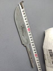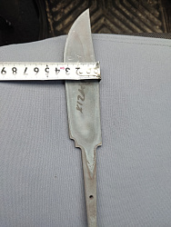 Размеры бланка: длина клинковой части 143мм (1-2 мм предусмотрены для посадки больстера), ширина 35мм, длина хвостовика 85мм, диаметр отверстия 4мм.