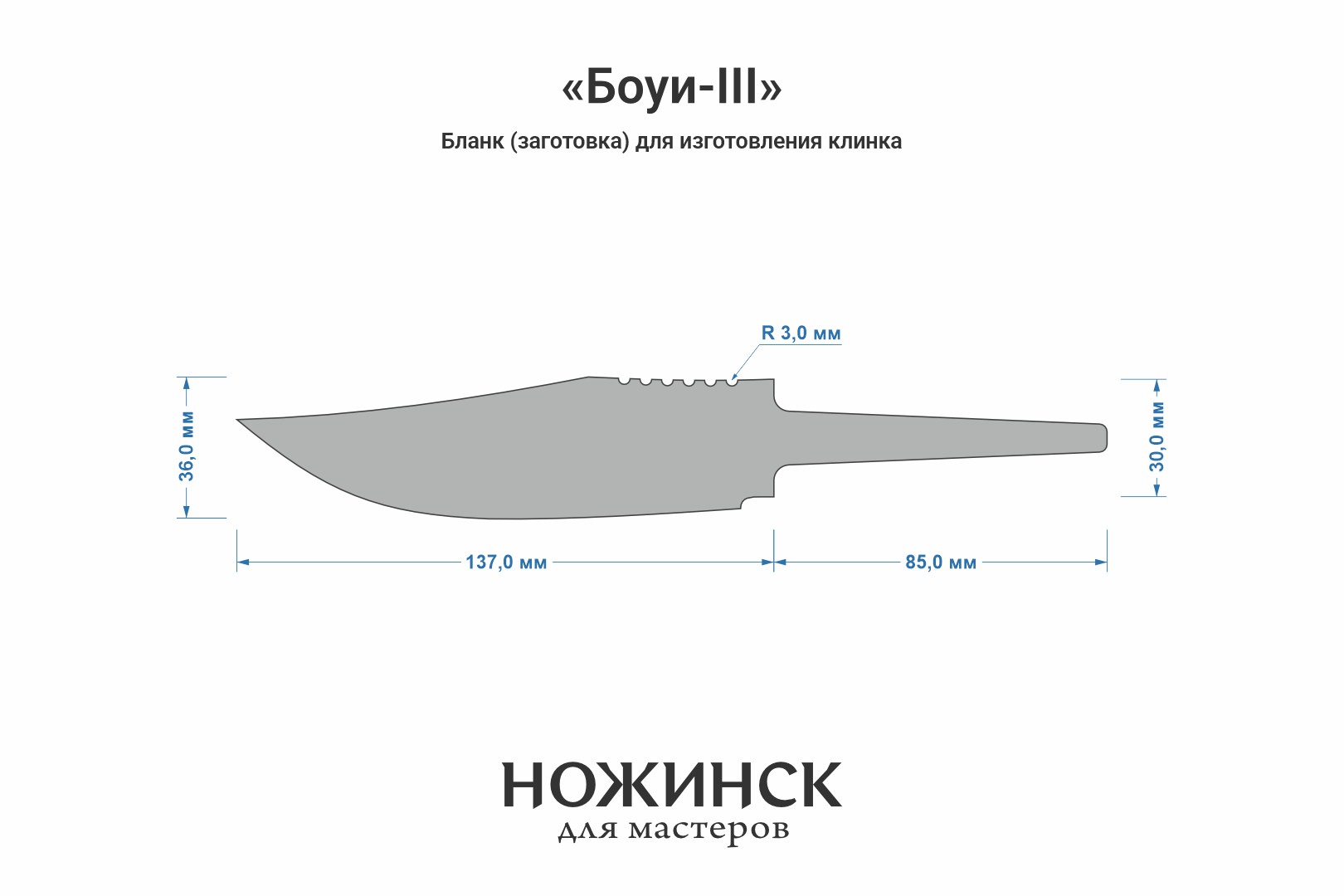Размеры бланка: длина клинковой части 137мм (1-2 мм предусмотрены для посадки больстера), ширина 36мм, длина хвостовика 85мм.