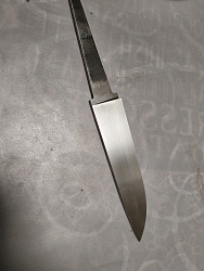 Бланки могут иметь незначительные поводки, устраняемые шлифованием. Заготовки клинков, предназначенные для сквозного монтажа, требуют высокого отпуска окончания хвостовика (от трех до пяти нагревов горелкой до 750-800°С) для нарезания резьбы или расклепывания.