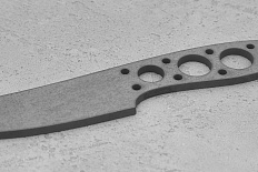 Бланк-заготовка для ножа «Универсал-II» из листового проката стали Х12МФ, изготовлен методом гидроабразивной резки.