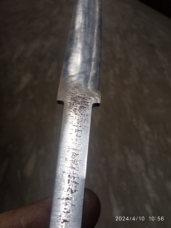 Бланки могут иметь незначительные поводки, устраняемые шлифованием. Заготовки клинков, предназначенные для сквозного монтажа, требуют высокого отпуска окончания хвостовика (от трех до пяти нагревов горелкой до 750-800°С) для нарезания резьбы или расклепывания.