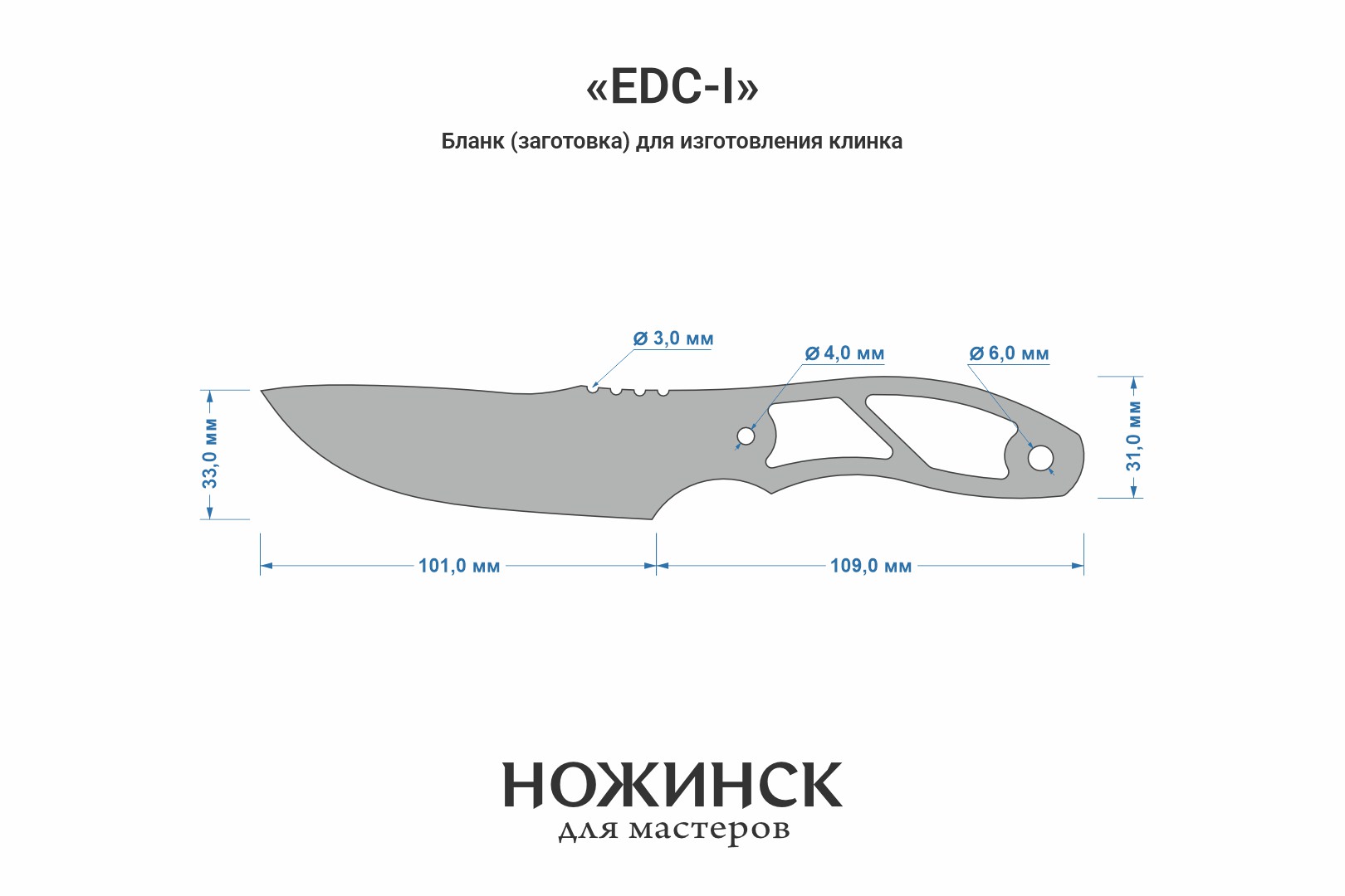 Размеры бланка: длина клинковой части 101мм, ширина 33мм (1мм предусмотрен на контуровку), общая длина заготовки 210мм.