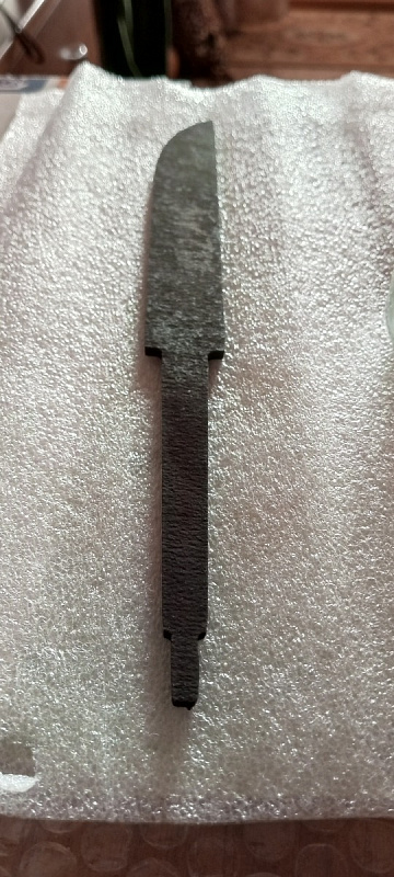 Бланк-заготовка для ножа «Финка Р-II» из листового проката стали Х12МФ, изготовлен методом гидроабразивной резки.