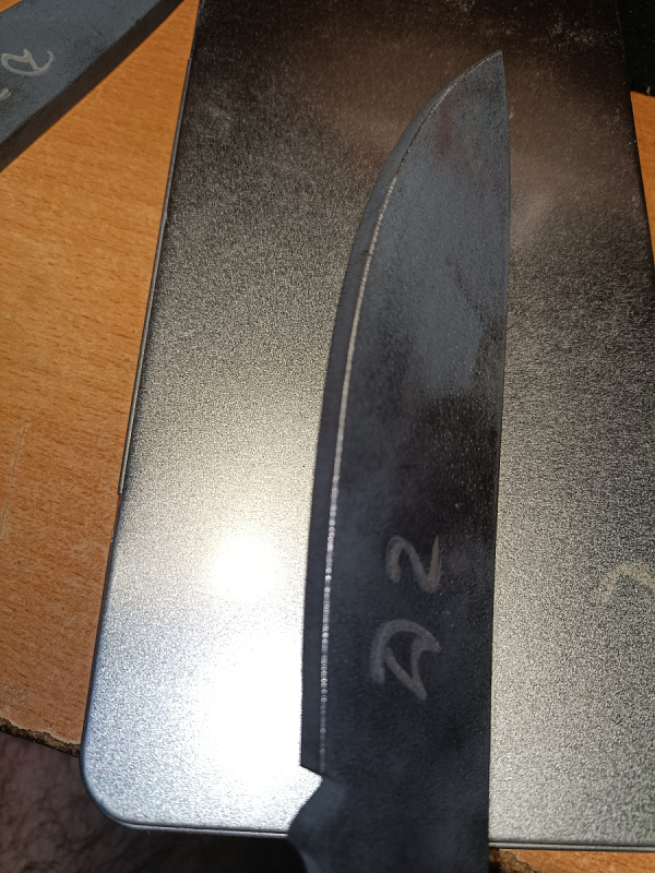 Бланки могут иметь незначительные поводки, устраняемые шлифованием. Заготовки клинков, предназначенные для сквозного монтажа, требуют высокого отпуска окончания хвостовика (от трех до пяти нагревов горелкой до 750-800°С) для нарезания резьбы или расклепывания.