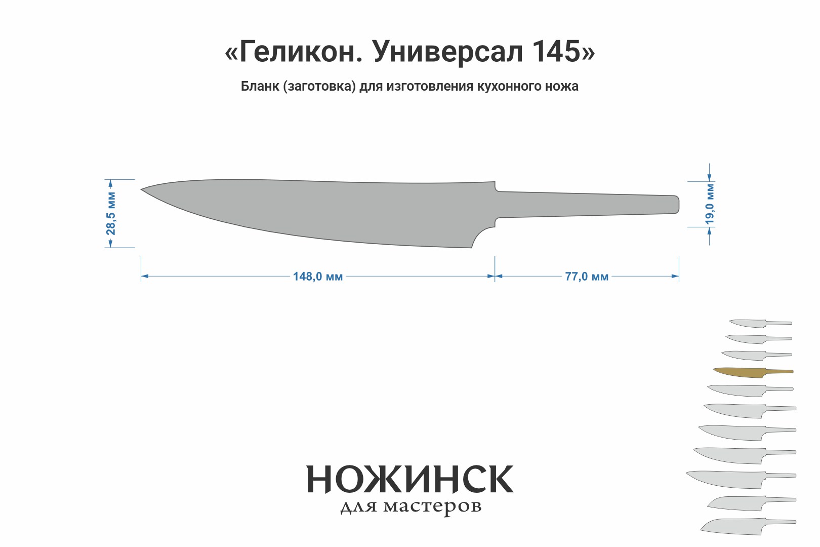 Размеры бланка: длина клинковой части 148мм (предусмотрена глубокая посадка в больстер), ширина 28,5мм, длина хвостовика 77мм.