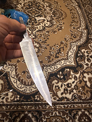 Бланк-заготовка для кухонного ножа «Геликон У145» из листового проката порошковой стали M390 австрийско-шведского концерна Bohler-Uddeholm, вырезан методом гидроабразивной резки.