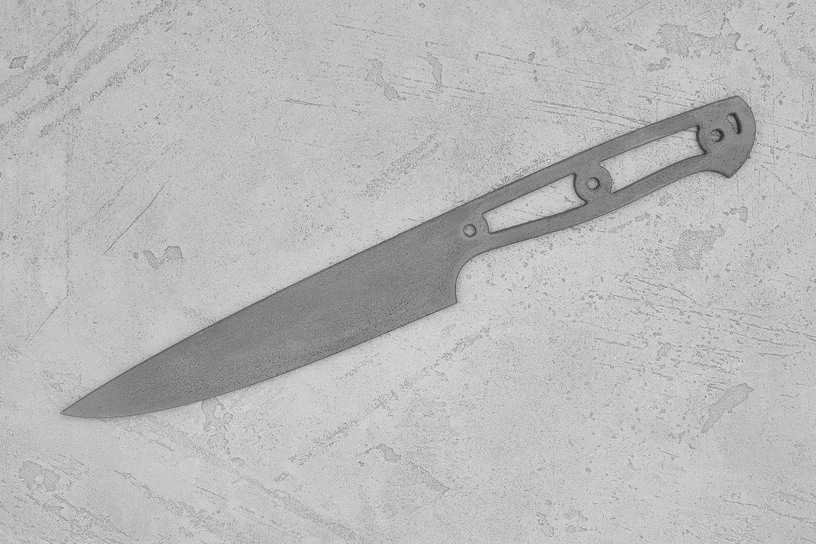 Бланк-заготовка для кухонного ножа «Аппарель У145» из листового проката порошковой стали M390 австрийско-шведского концерна Bohler-Uddeholm, вырезан методом гидроабразивной резки.