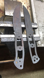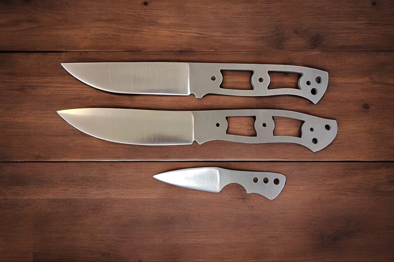 Бланк-заготовка для ножа «Бушкрафт-II» из листового проката порошковой стали MagnaCut китайского завода специальных сталей TG (Tiangong Tools), вырезан методом гидроабразивной резки.