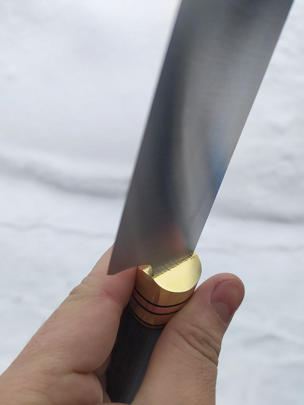 Размеры бланка: длина клинковой части 202мм (1-2 мм предусмотрены для посадки больстера), ширина 42,5мм, длина хвостовика 85мм.