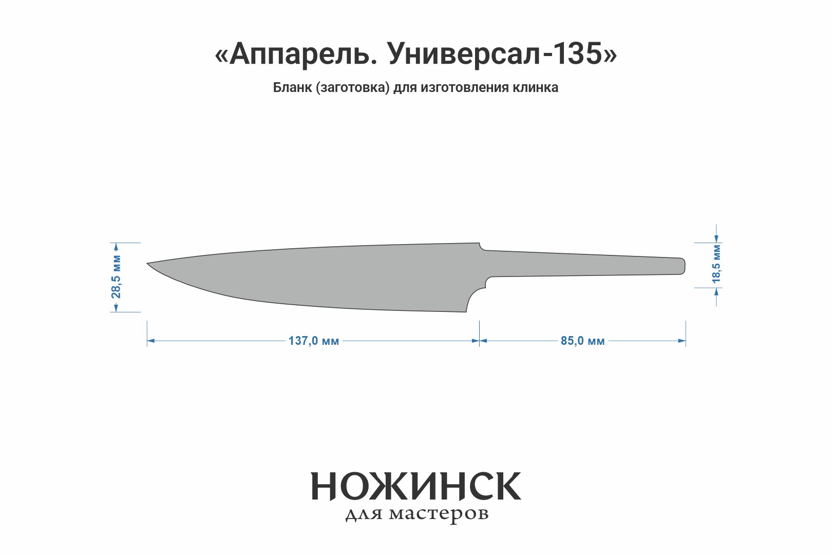 Размеры бланка: длина клинковой части 137мм (1-2 мм предусмотрены для посадки больстера), ширина 28,5мм, длина хвостовика 85мм.